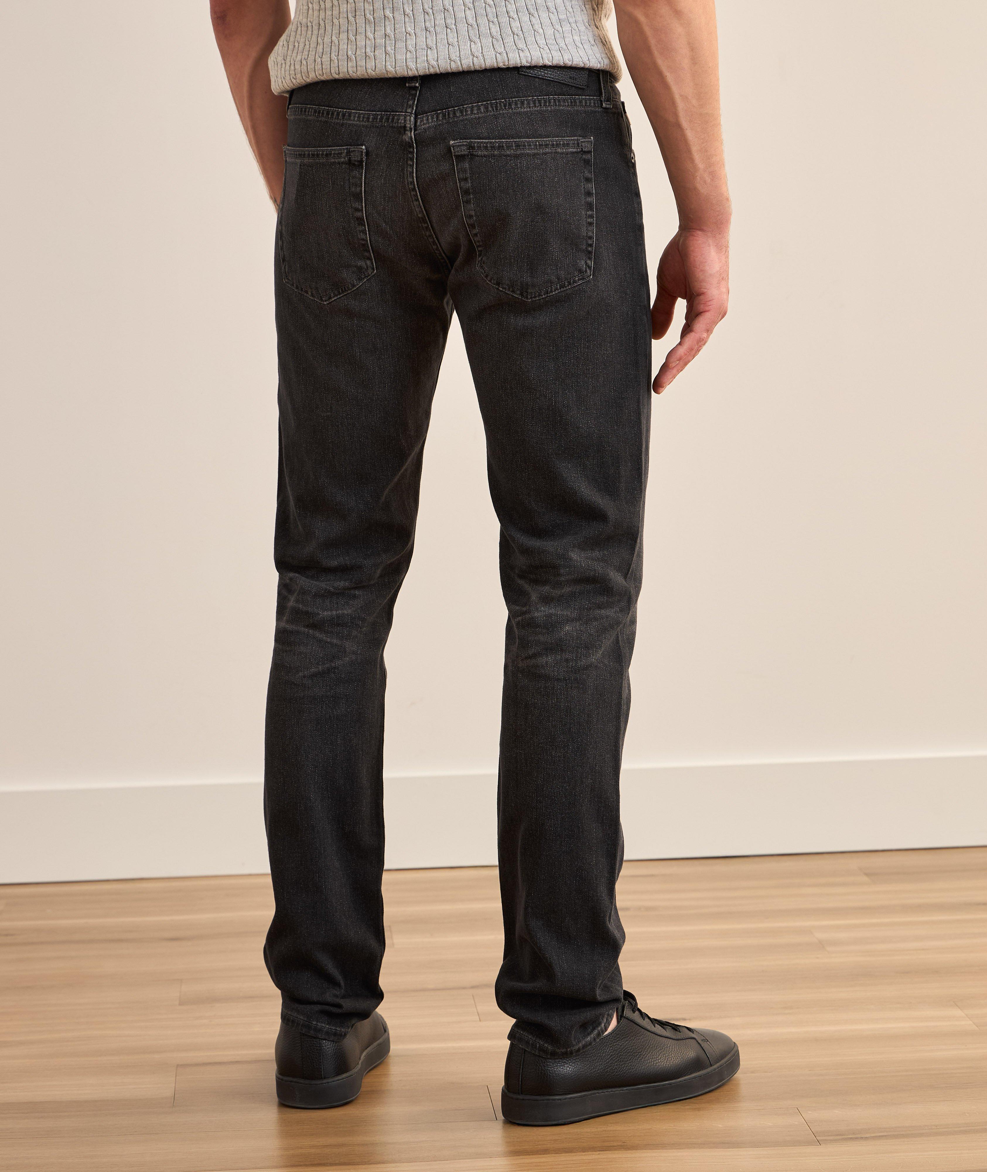 Belt loops Zipper fly Logo patch on waistband Engraved hardware Woven in Italy Grey Colour: 12 Years Cave Slightly whiskered, faded tint finish 93% cotton, 6% polyester, 1% elastane Machine wash, cold