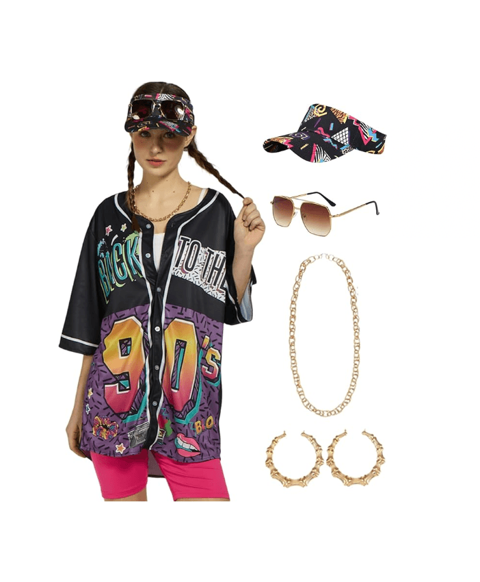 80s Costume Women:It includes everything you need—a 80s 90s style baseball jersey, comfortable yoga pants, a classic visor hat, gold-tone accessories, and a practical fanny pack. Whether you're heading out for a fun day or hitting up a 80s 90s themed party, this 90s costume women has you covered. Disclosure: We are a participant in the Amazon Services LLC Associates Program, an affiliate advertising program designed to provide a means for us to earn fees by linking to Amazon.ca and Affiliate sites.