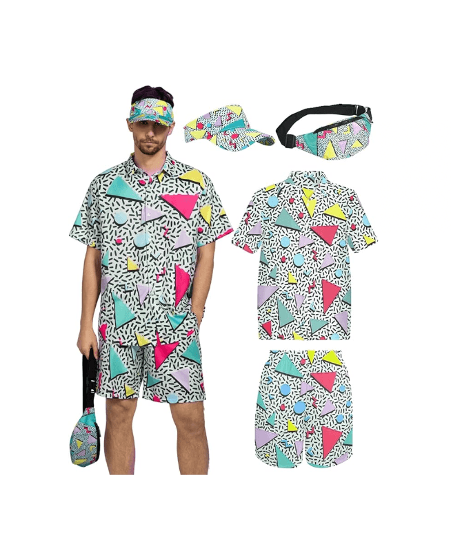 Authentic 80s Outfit for Men: Featuring vibrant, colorful geometric prints reminiscent of the 1980s costume, this 80s 90s shirts and short set brings nostalgia to life. The eye-catching patterns are perfect for those who love to express themselves through unique fashion. Disclosure: We are a participant in the Amazon Services LLC Associates Program, an affiliate advertising program designed to provide a means for us to earn fees by linking to Amazon.ca and Affiliate sites.