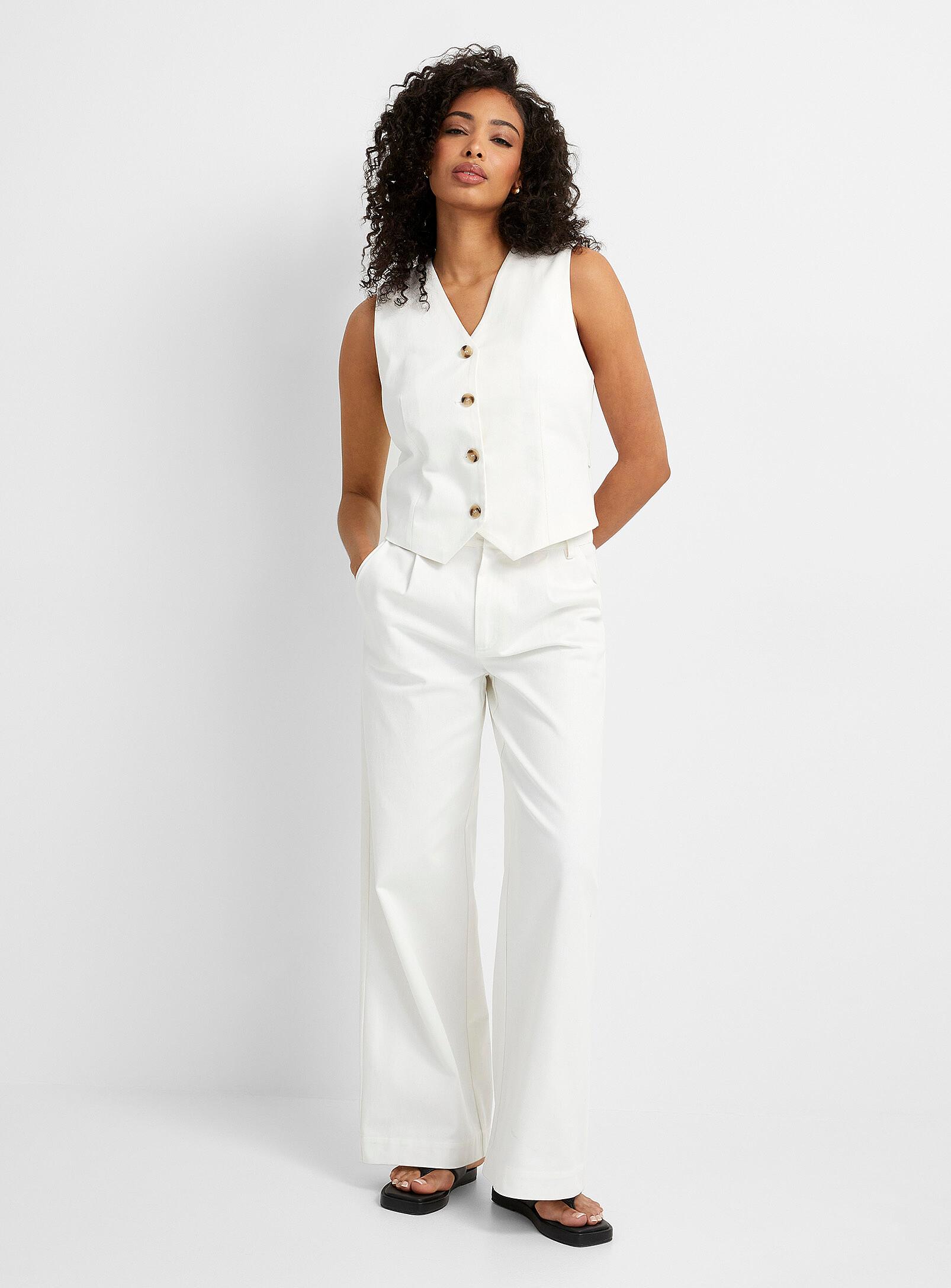 Saint Tropez - Jaclyn sleek waist supple jean Fit: Wide leg, mid rise Saint Tropez Saint Tropez at Contemporaine Fit Wide leg Mid rise Fabric Ultra-supple and lightweight 100% cotton denim Details Zip fly, belt loops Two sewn pleats at the waist Please note that online-only items are shipped directly from the supplier. Consequently, they are delivered separately from regular Simons products and may arrive within a different time frame. Additionally, the packaging may look different than what you normally receive from Simons. The size of the item pictured is small