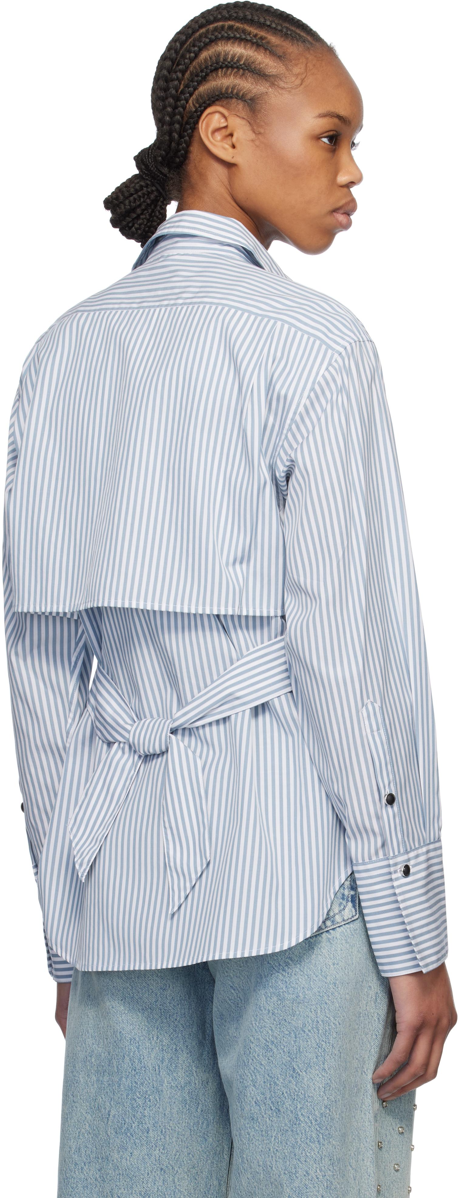 Cotton poplin shirt. Stripes throughout. · Layered construction · Spread collar · Button closure · Shirttail hem · Single-button barrel cuffs · Pleats at back yoke · Self-tie strap at back · Logo-engraved black hardware Supplier color: Blue stripe