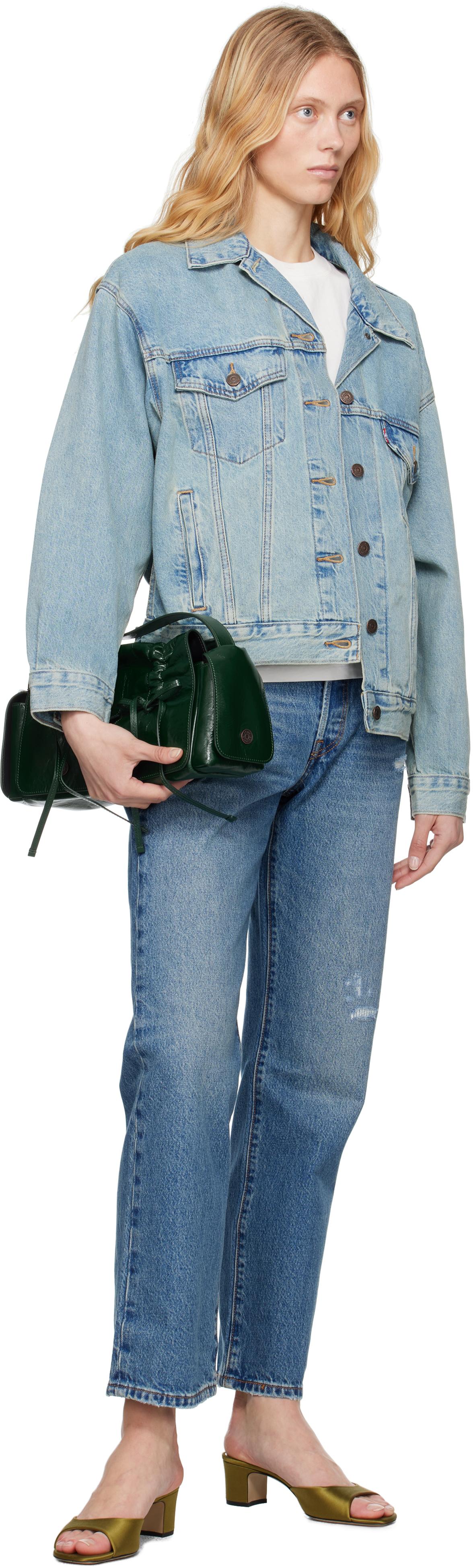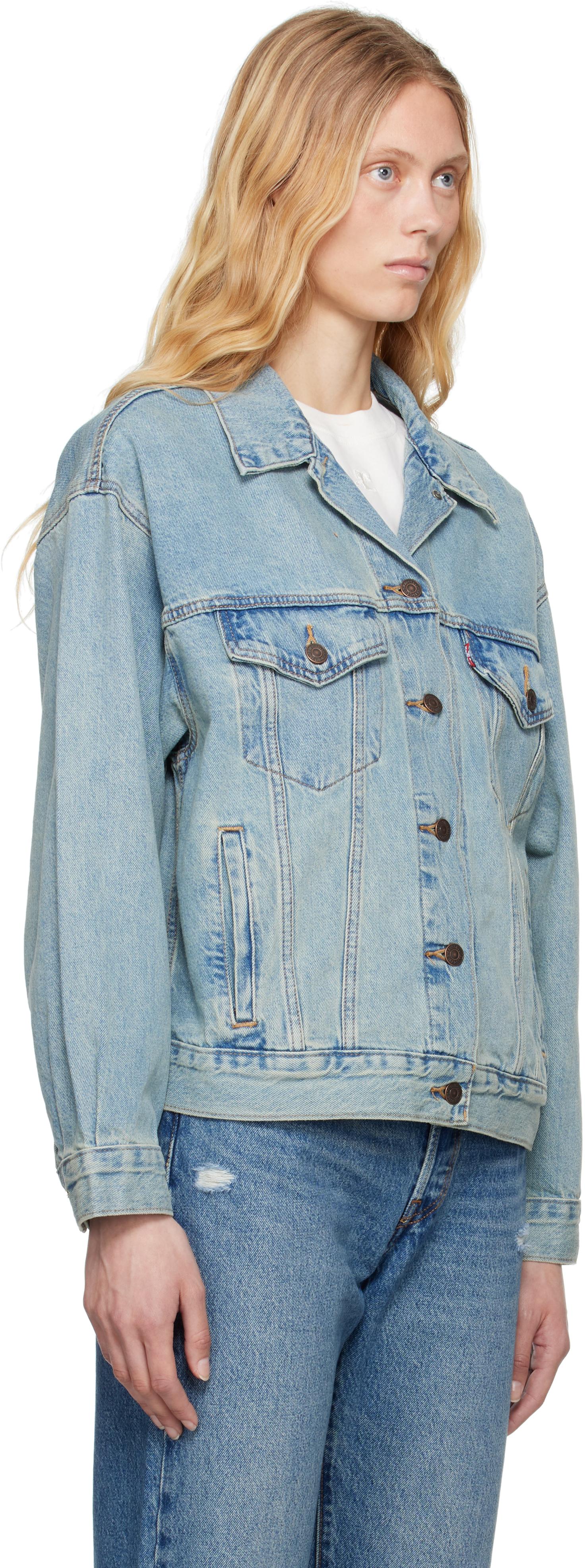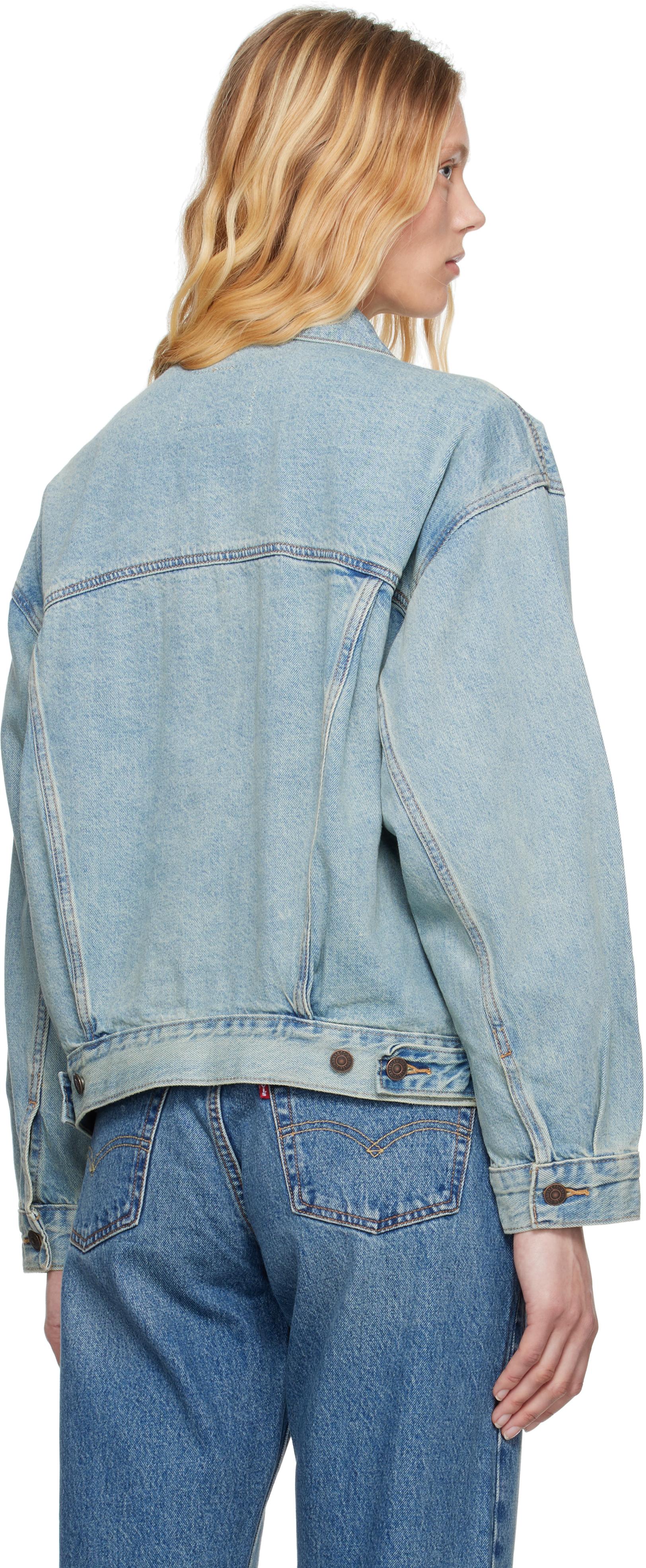 Loose-fit non-stretch denim jacket. Fading throughout. · Spread collar · Button closure · Logo flag at chest · Flap and welt pockets · Dropped shoulders · Pleats at buttoned cuffs · Twin pleats at back yoke · Adjustable button tabs at back hem · Logo-engraved antiqued bronze-tone hardware · Contrast stitching in tan Supplier color: I told you trucker