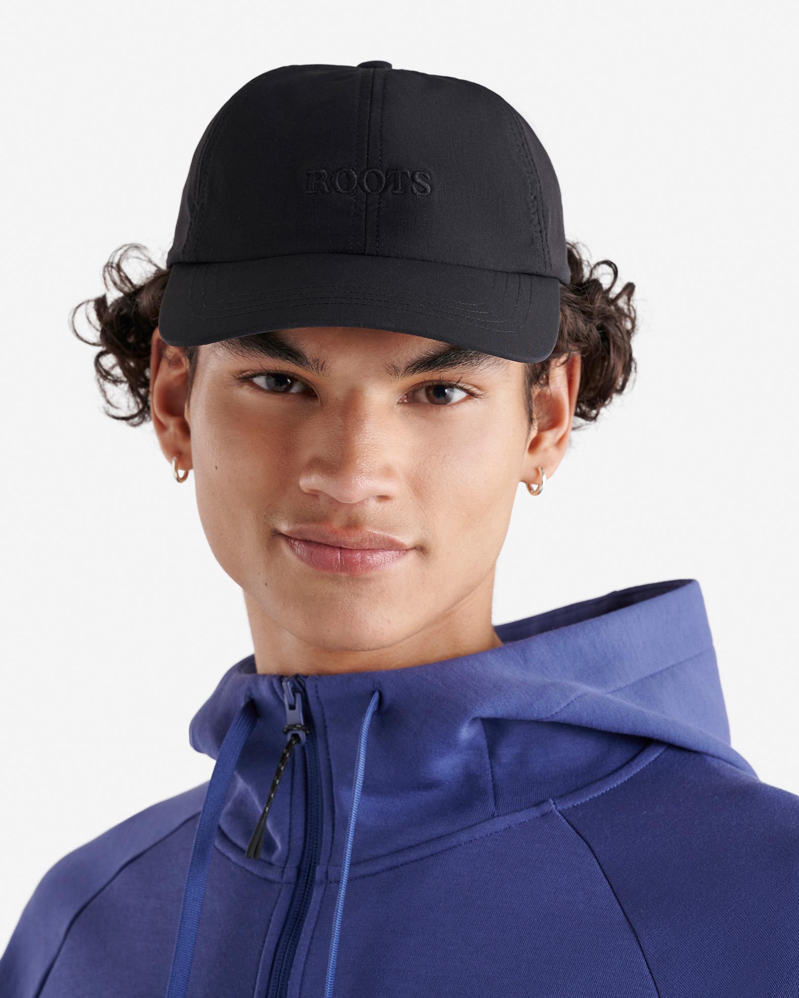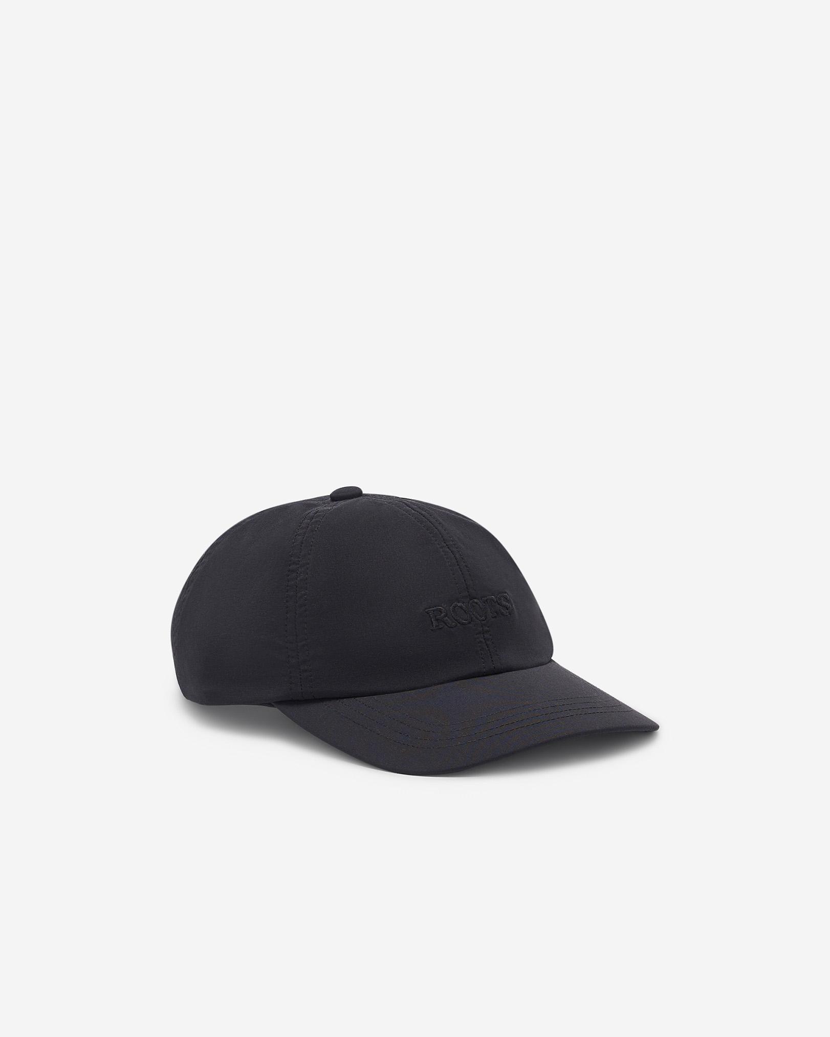 Our lightweight Roots Nylon Baseball Cap was made for your active life, whether you're running, canoeing or on vacation. Designed with a new, modern fit, this cap is not only moisture wicking but features UV Protection. Recycled nylon blend Modern fit with flatter brim Shallow crown depth Moisture wicking Fast drying UV Protection UPF 40+ Embroidered logo on centre front ABOUT 85% recycled nylon, 15% spandex LOOK AFTER ME Hand wash separately in cold water No bleach Hang to dry No iron Do not dry clean Roots Nylon Baseball Cap Hat in Black