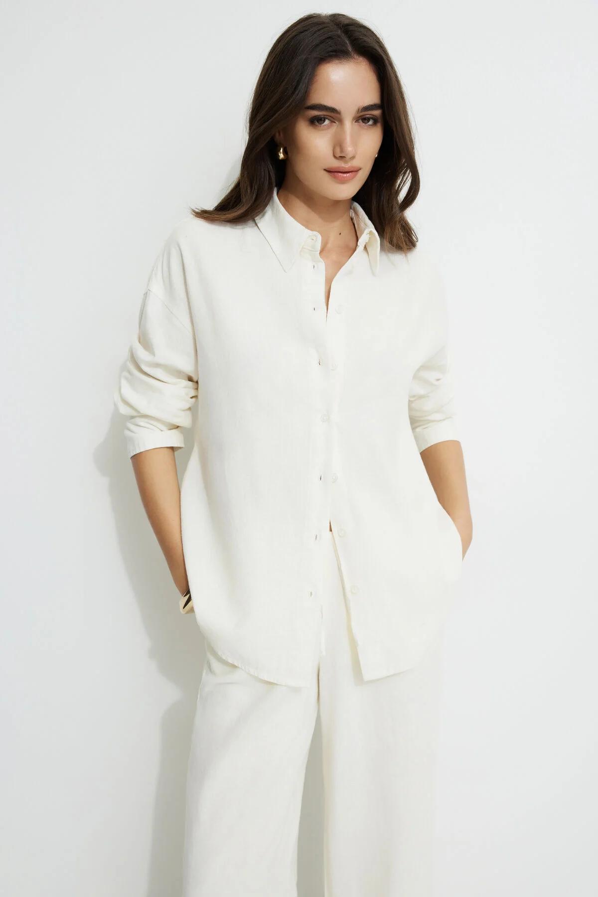 This woven nep linen shirt is designed to have an oversized fit. Features - Spread collar - Button closure - Buttoned cuffs - Dropped shoulders - Inverted box pleat at back Size & Fit - Oversized - Model is wearing size XS Materials & Care - 52% linen, 48% viscose - Machine wash, cold - Imported
