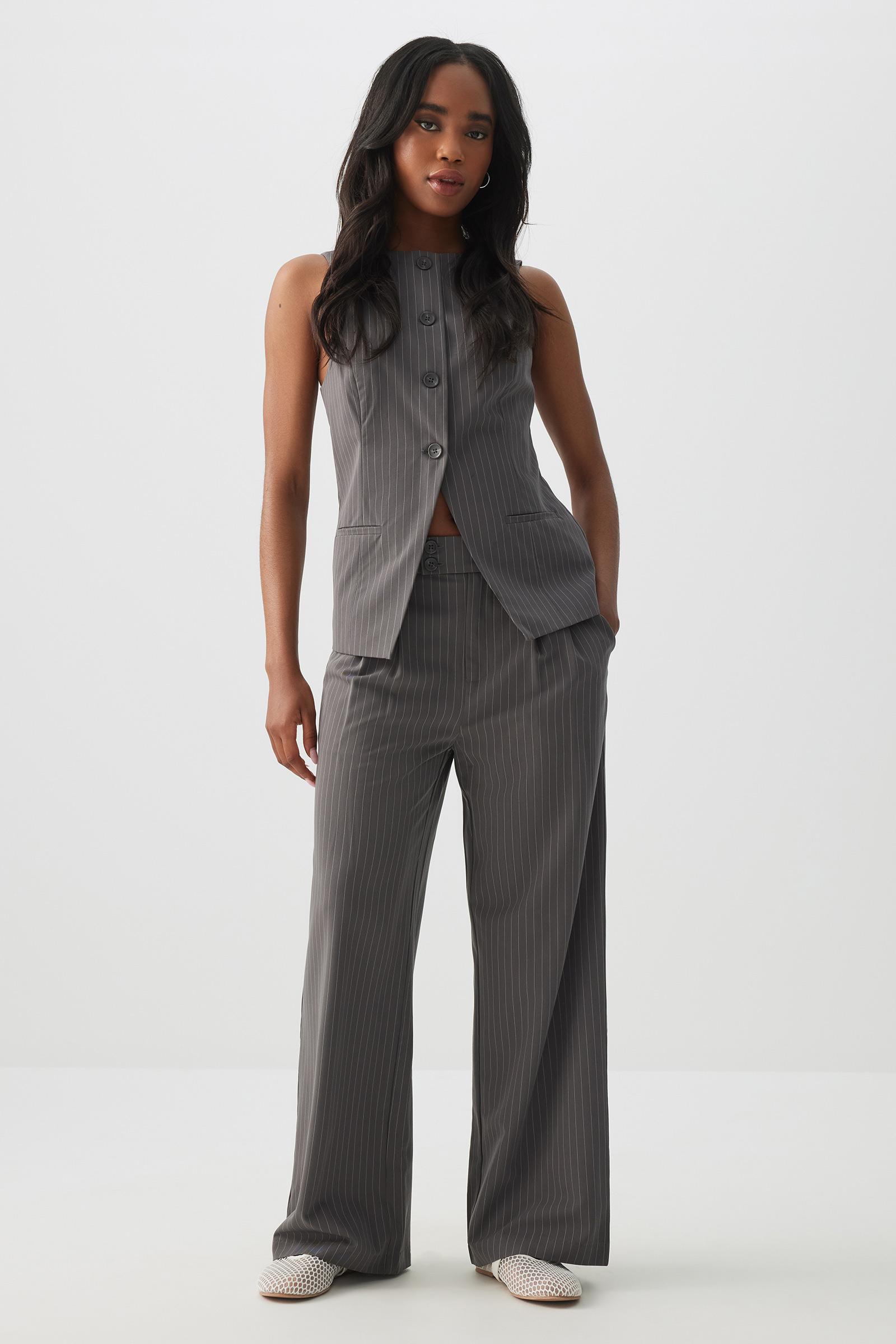Ardene Pinstriped Straight Leg Pants in Dark Grey