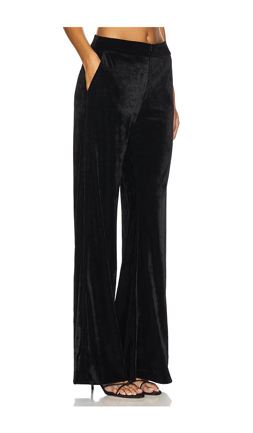 PatBO Velvet Wide Leg Pant in Black. Size 2. Self: 96% polyester 4% elastane Lining: 95% polyester 5% elastane. Made in Brazil. Dry clean only. Fly zip closure. Side seam pockets. Midweight velvet fabric. 19 at the knee breaks to 28 at the leg opening. PBTO-WP18. CAL30056US. PatBO is a Brazilian brand that captures the vibrant energy of South America through its artfully hand-embroidered Ready-To-Wear and Swim Collections. A dedication to preserving the art of craftsmanship is the essence of PatBO and a guiding principle of our Founder & Creative Director, Patricia Bonaldi. Each design is expertly handmade in the brand's atelier by a team of local artisans who are empowered by the skills they have acquired through PatBO.