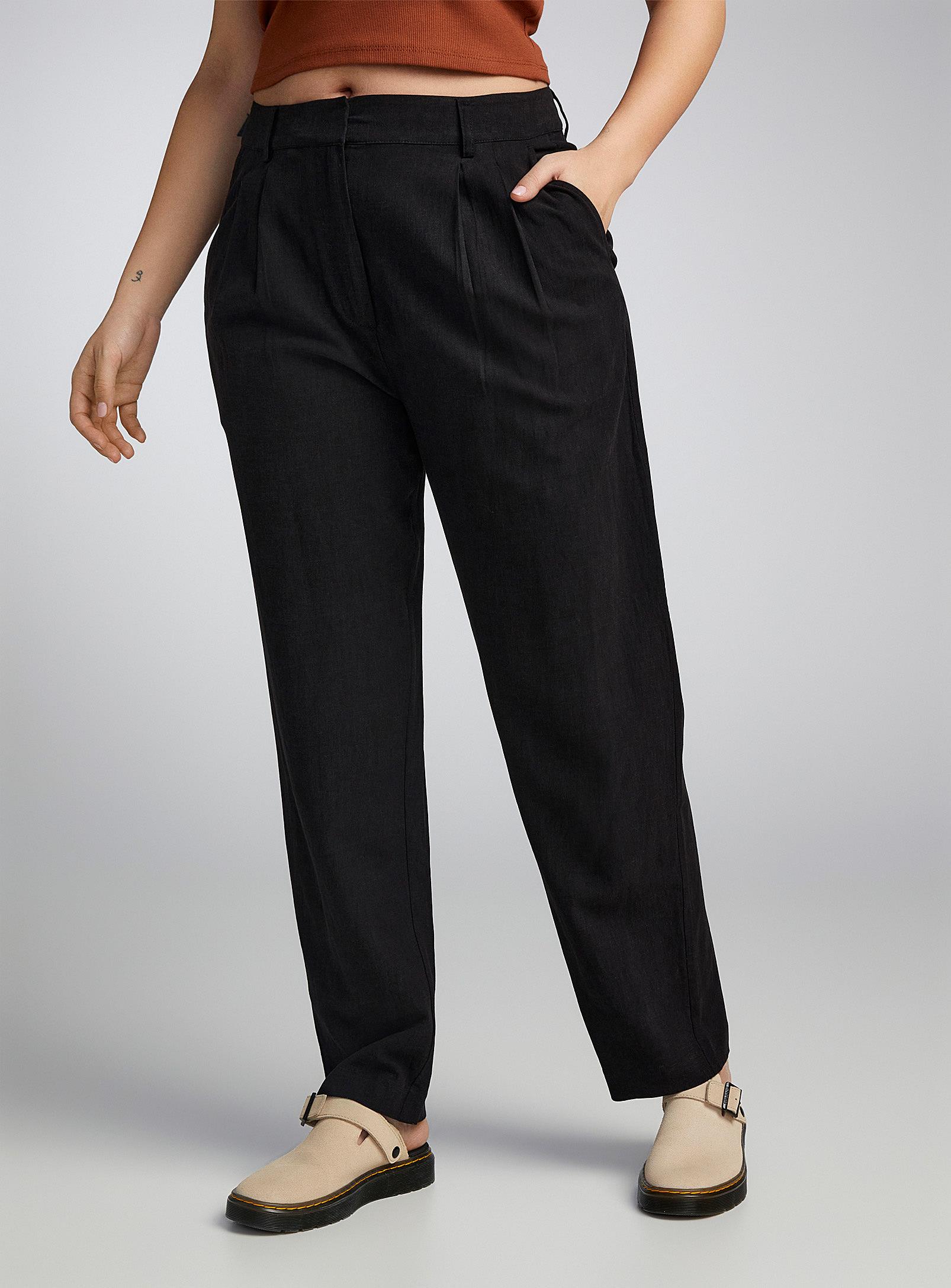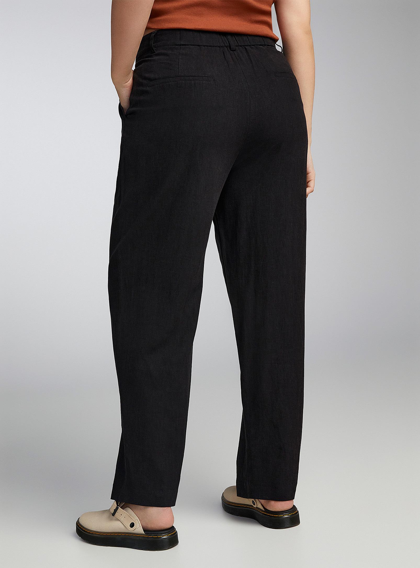 Twik - Organic linen dress pant Twik Twik exclusive Two sewn pleats at the waist Lightweight fabric in an organic linen blend Slit pockets at the front and trompe-l'oeil piped pockets at the back Covered elastic waistband at the back Details Fit: Tapered leg Waist: High Rise: 17.5" (44 cm) Inseam length: 28.5" (73 cm) The size of the item pictured is small