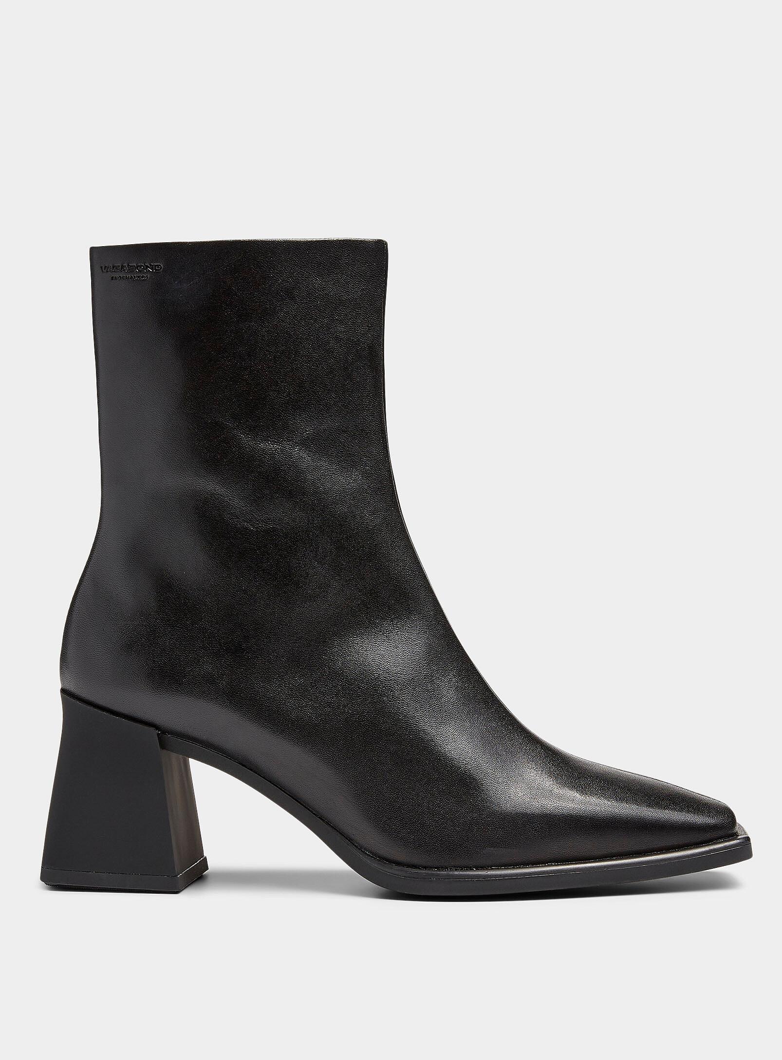 Vagabond Shoemakers - Hedda square-toe leather boot Women Vagabond Shoemakers Vagabond Shoemakers from Sweden at Simons This sophisticated '70s style crafted in smooth, high-quality leather is the epitome of elegance Genuine leather upper Side zip Square toe Padded footbed with a leather top cover Thermoplastic polyurethane non-skid outsole Heel height: 2.75" (7 cm) Model number: 5002-001