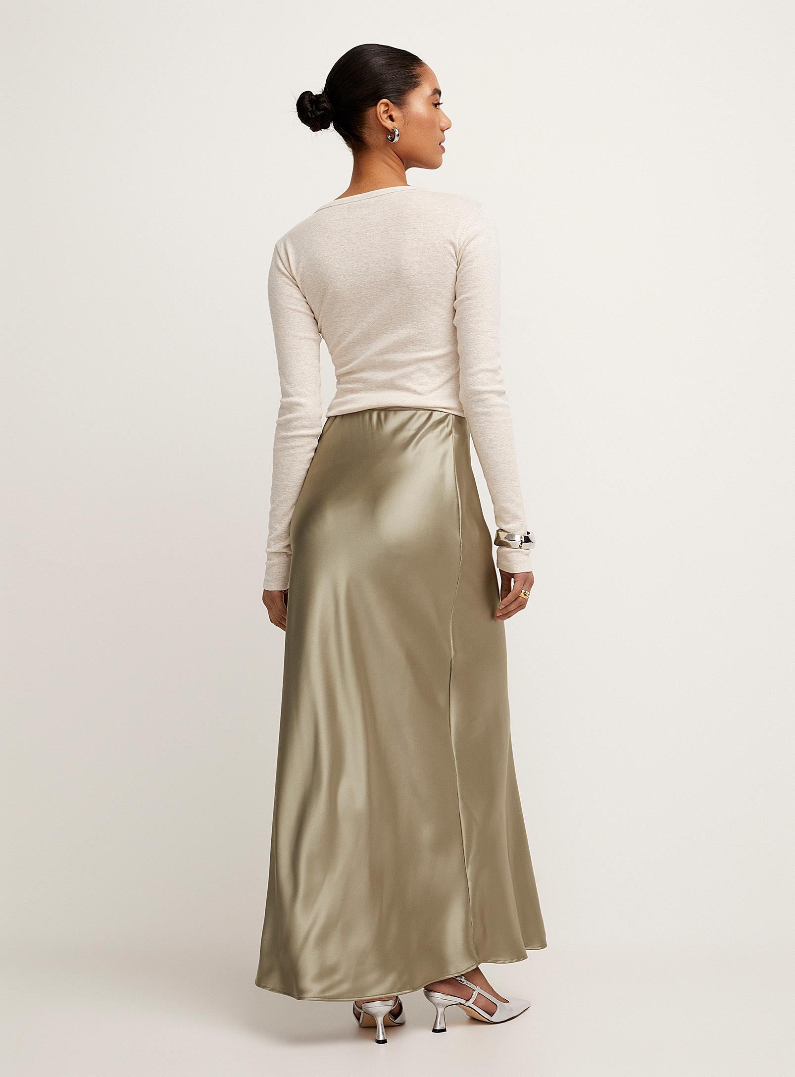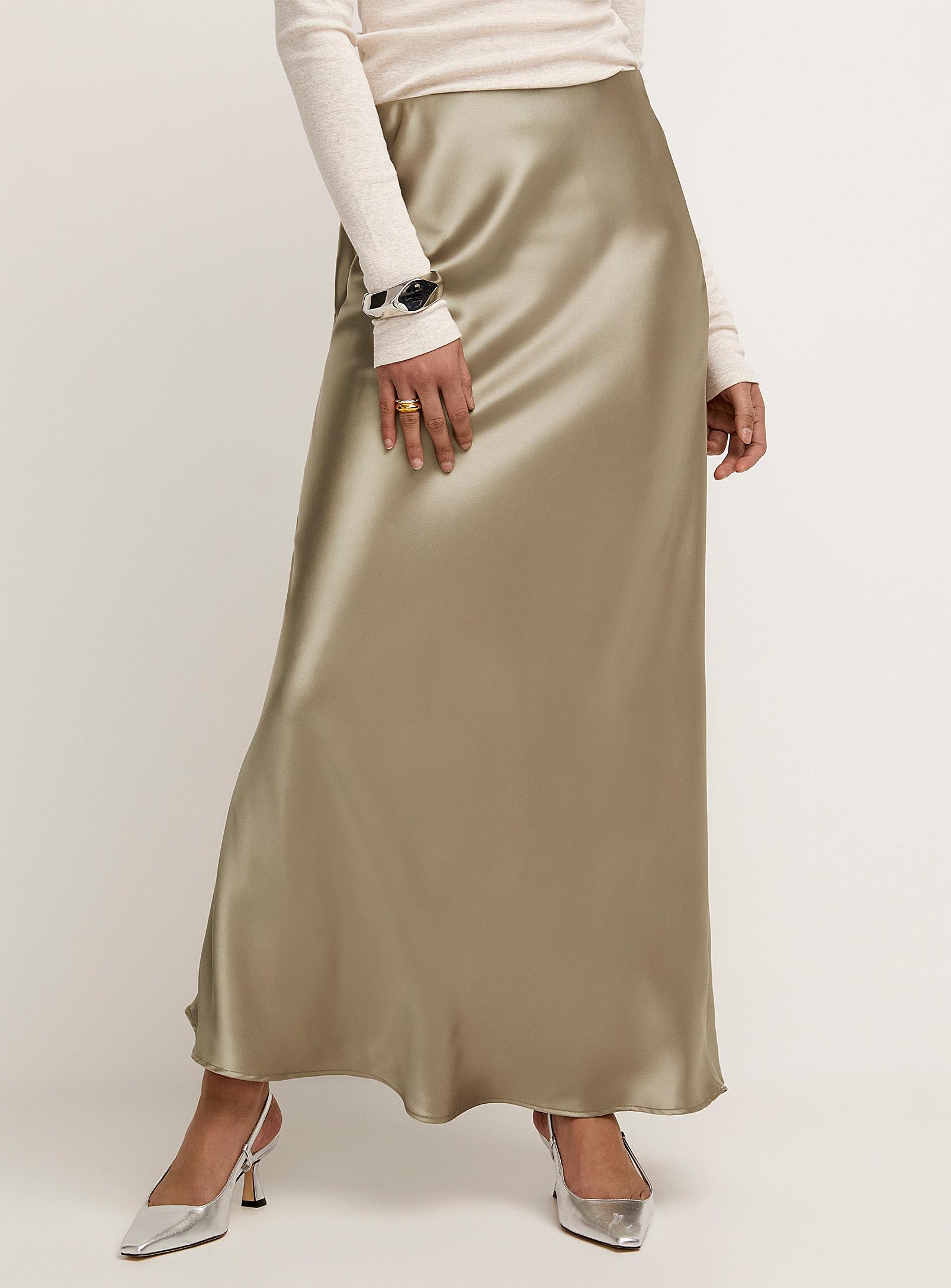 Icône - Maxi satiny skirt Icône Icône exclusive Soft, light and fluid satiny weave Unlined Slightly flared maxi-length design Covered elastic waistband Length: 32.25'' (82 cm) The size of the item pictured is small