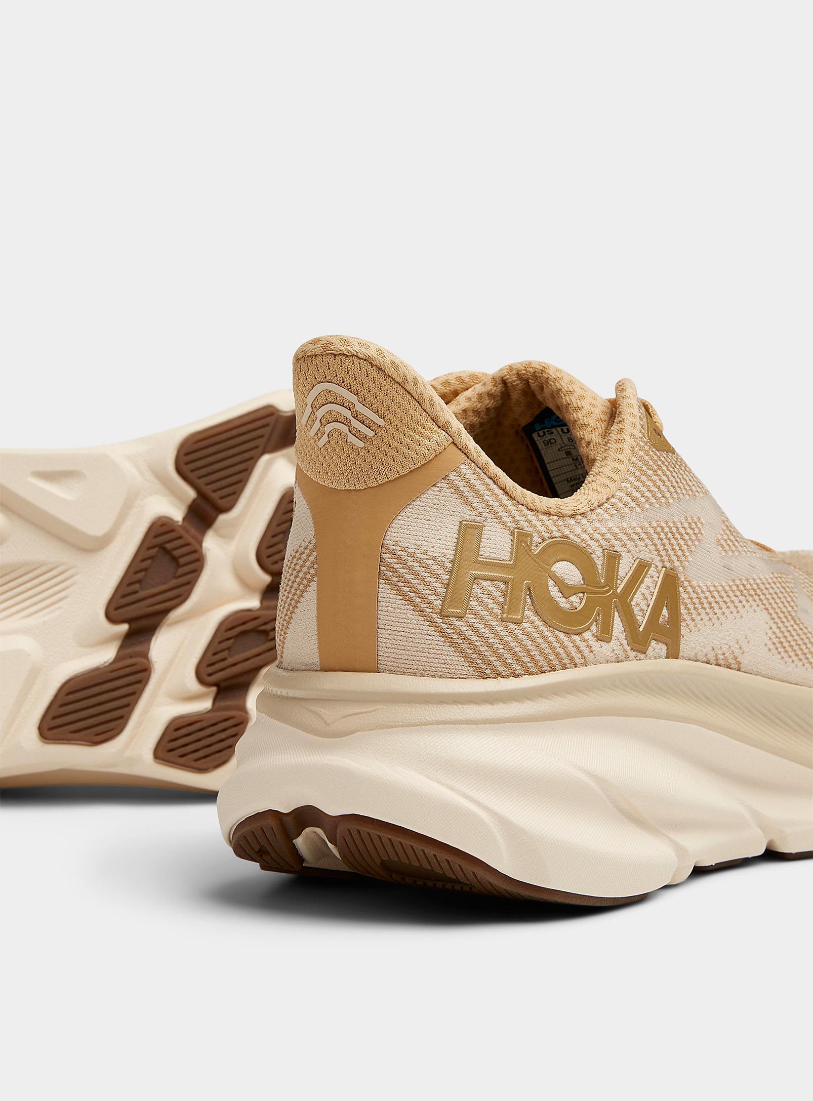 Hoka - Clifton 9 sneakers Men Hoka HOKA at Simons The ninth iteration of the award-winning Clifton franchise, lighter and more cushioned than ever. A responsive new foam and an improved sole design with a wider heel deliver a revitalized underfoot experience, while the stripped back upper and streamlined tongue are both stylish and functional. Breathable engineered mesh upper, partially made with recycled materials Reflective heel panel Streamlined tongue with single side medial gusset 100% recycled polyester laces Early stage Meta-Rocker technology: the curved Meta-Rocker is engineered into the sole to prevent flat landing and propel you forward. The early stage type is made to go fast, positioned in the rear for faster heel-to-forefoot transitions. Inherently stable geometry Removable foam footbed Compression-molded EVA midsole Durabrasion rubber outsole Model number: 1127895-WWH