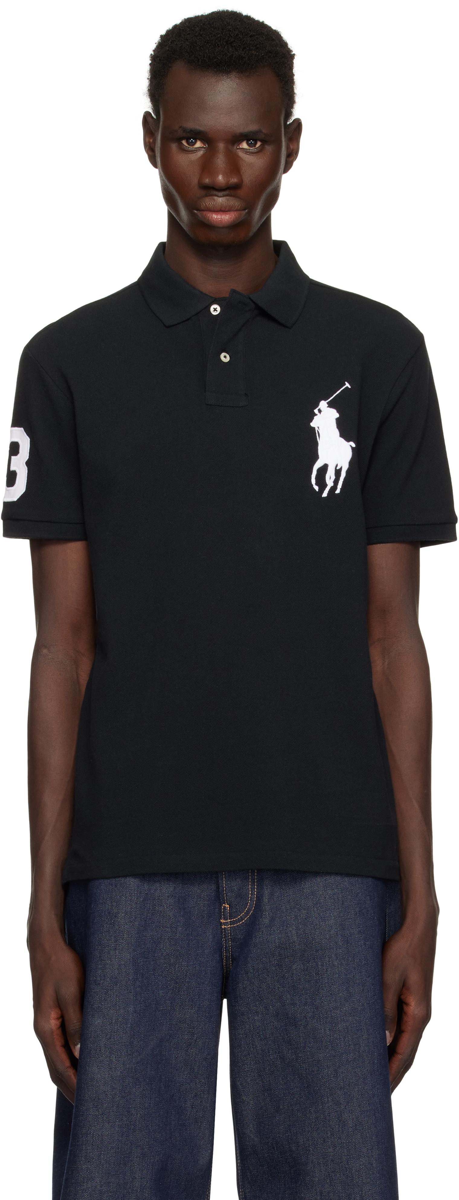 Polo Ralph Lauren Black Custom Slim Fit Big Pony Mesh Polo