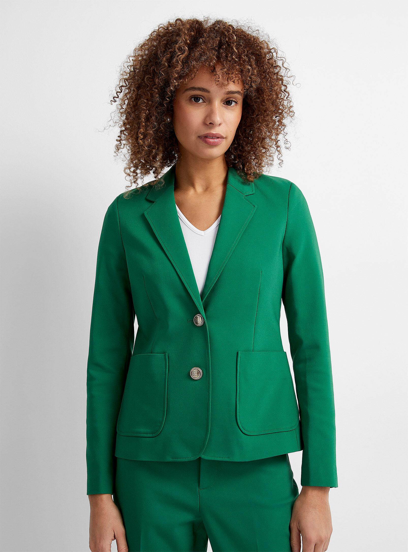 Contemporaine - Crest-button stretch fitted blazer (Women, Green, 12)