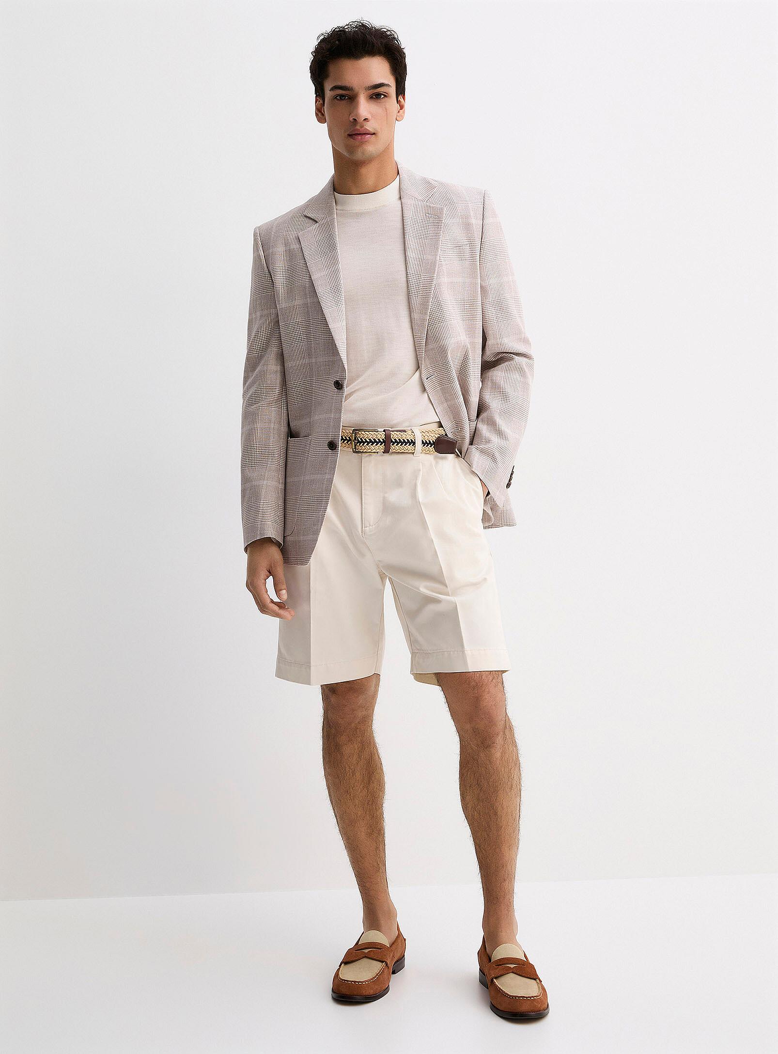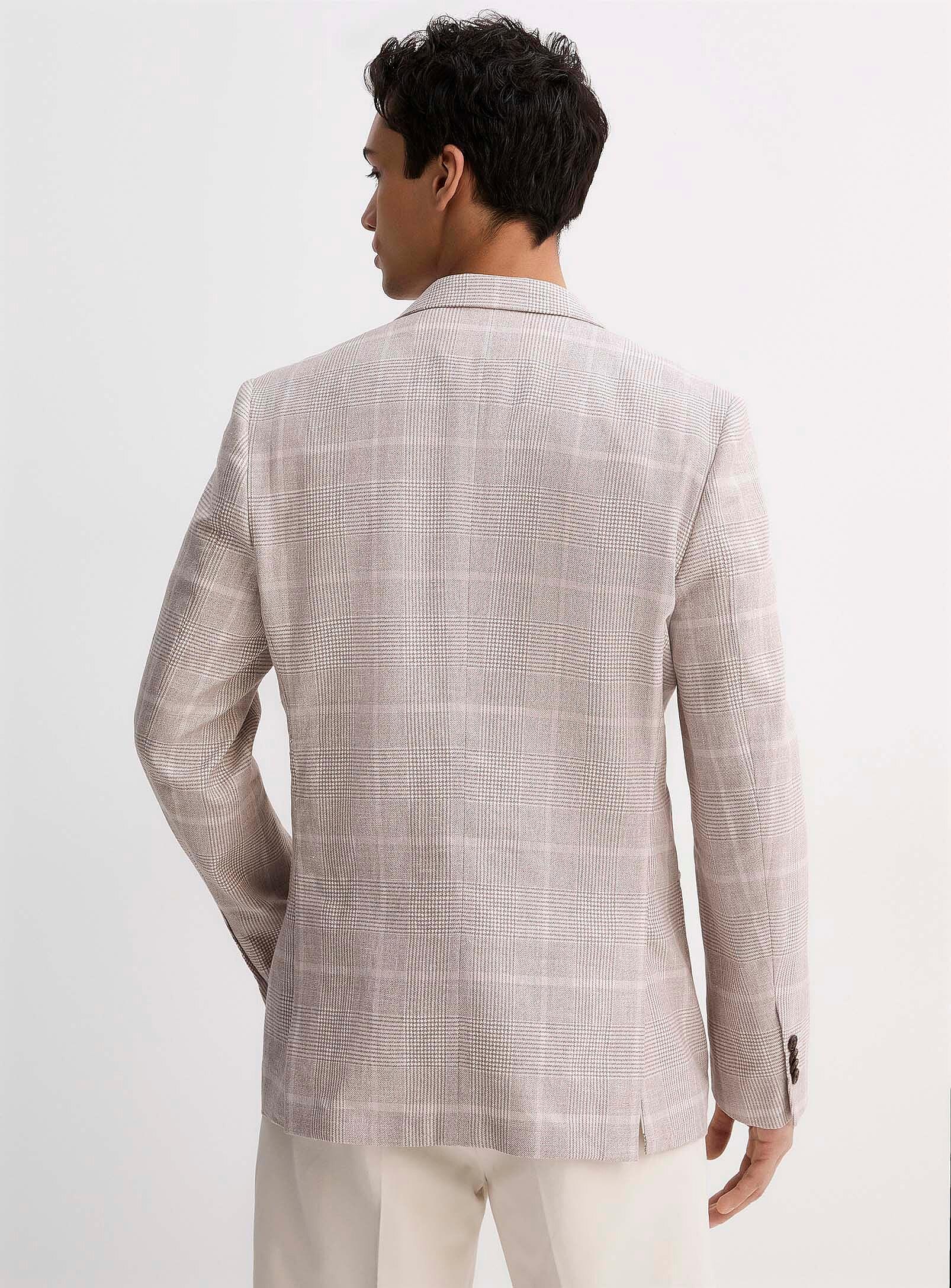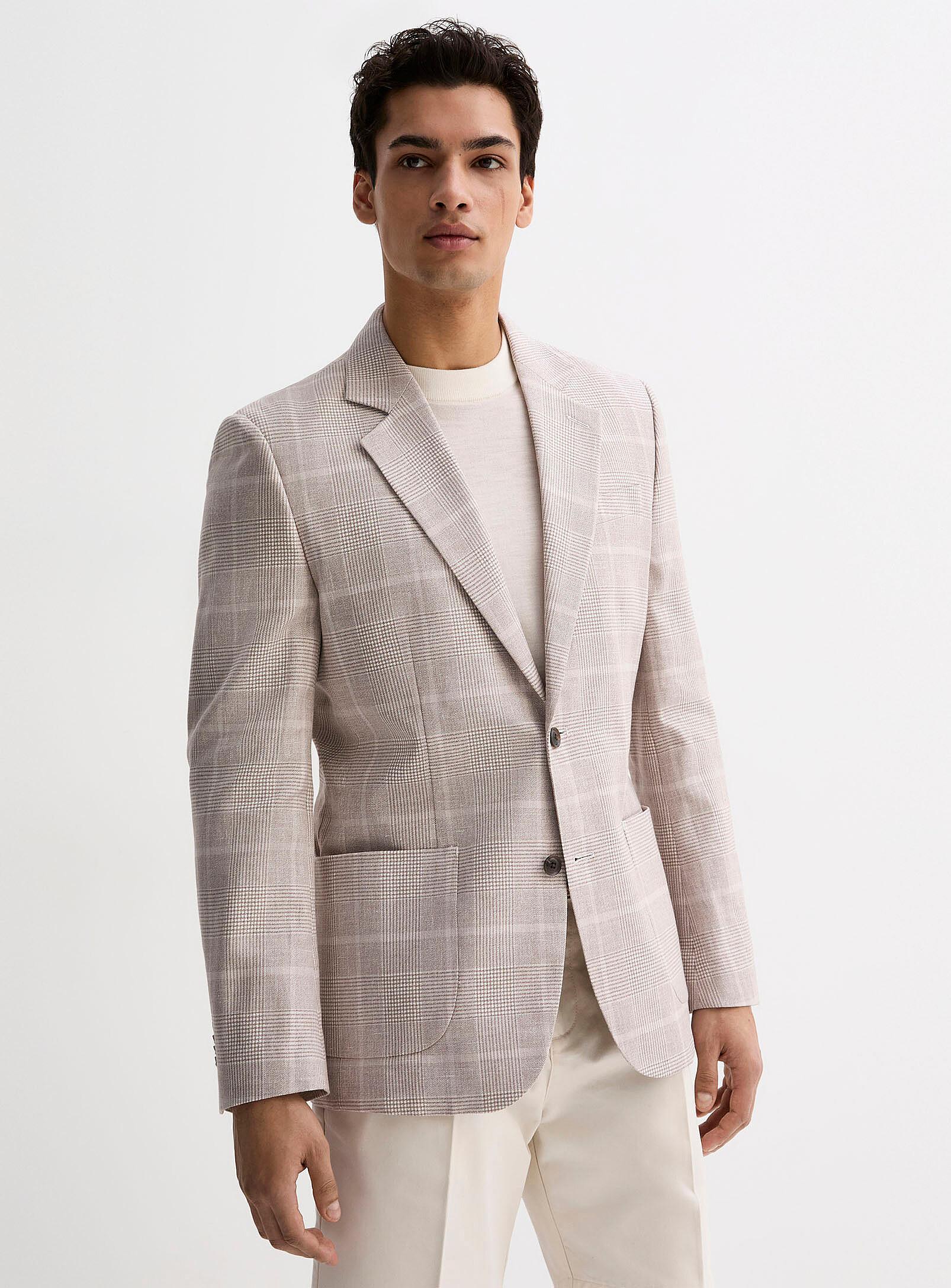 Le 31 - Sand check cotton and linen jacket London fit - Semi-slim (Men, Beige, 44-REG.)