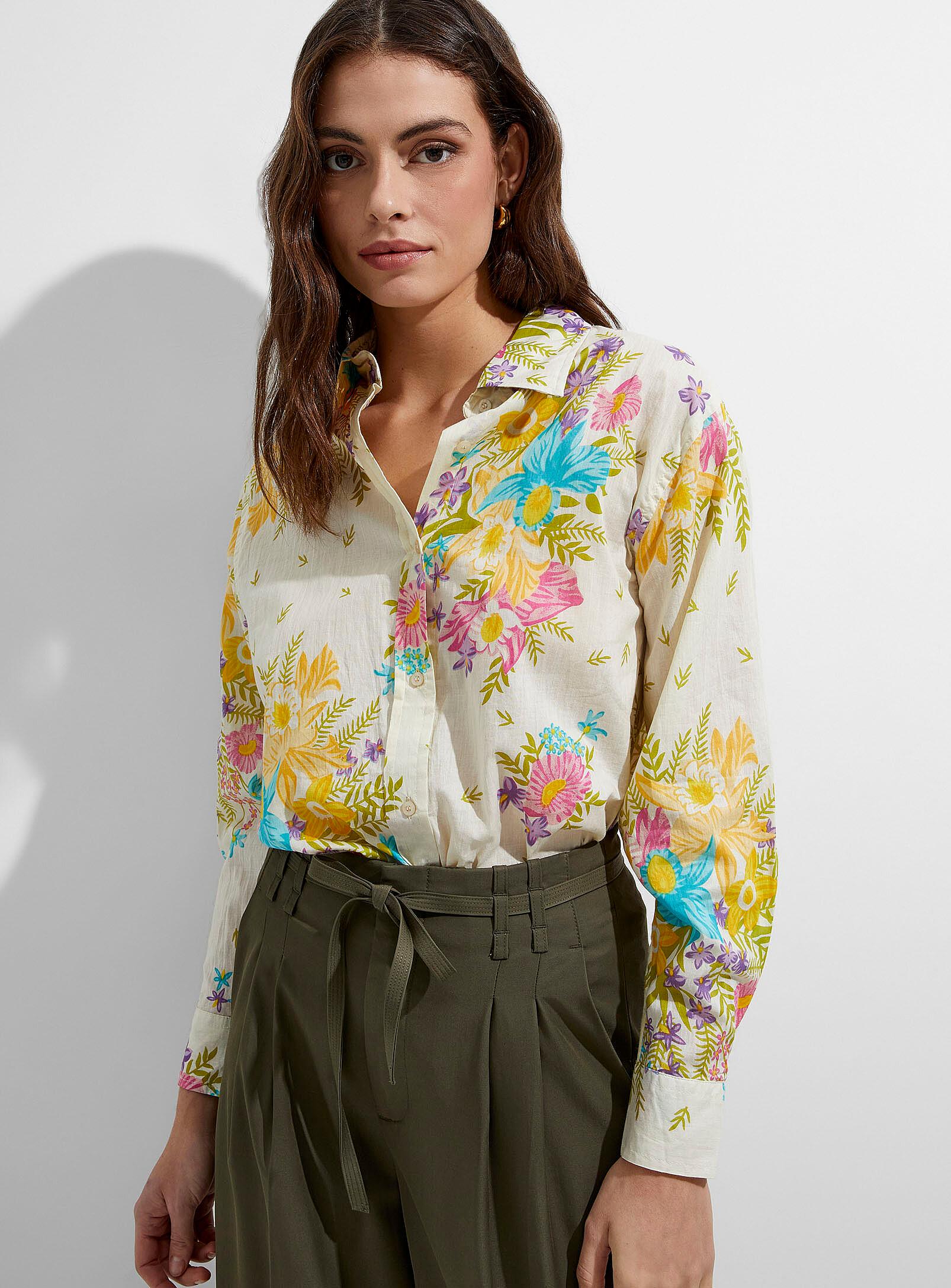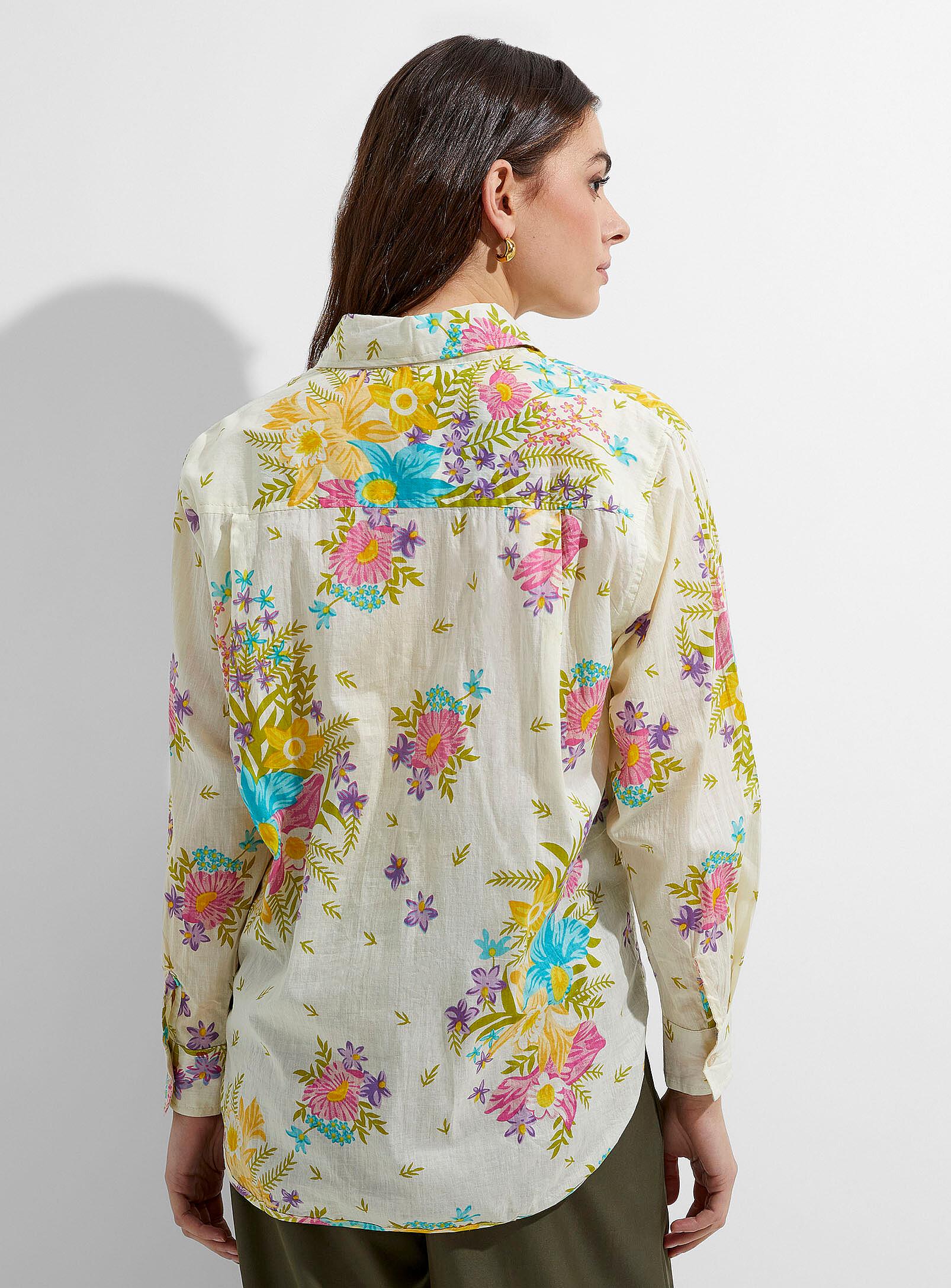 Women > Blouses & Shirtsbr>Icône - Luxurious bloom loose shirt Icônebr>ul>li>Ultra-lightweight and slightly sheer 100% cotton fabric/li>li>Casual, loose style/li>li>Buttons down the front/li>li>Rounded high-low hem/li>/ul>br>br>The size of the item pictured is small