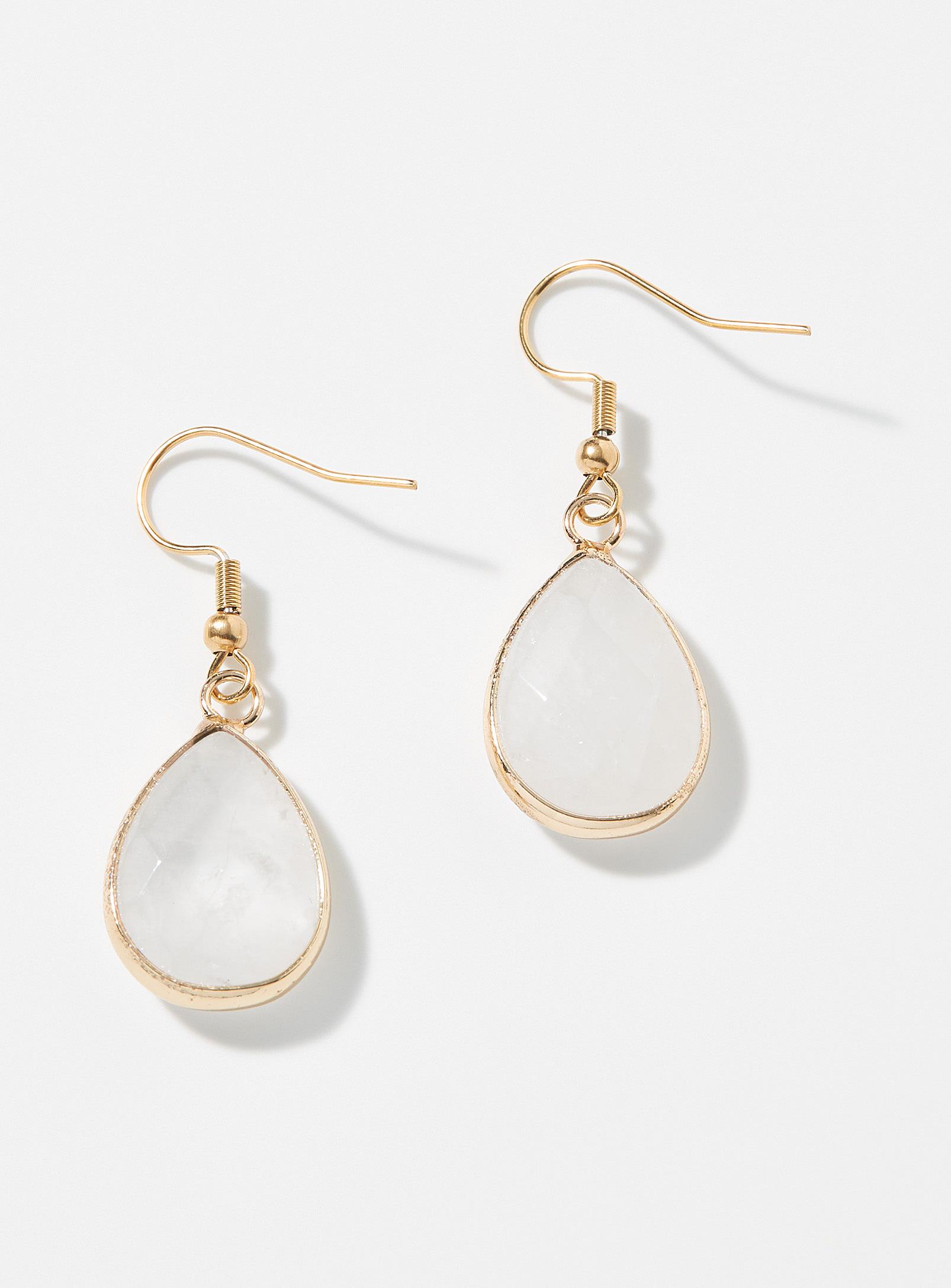 Simons - Translucent stone earrings Simons Irresistible teardrops with a long silhouette for a chic and ultra-feminine look Stainless steel Push back closure for pierced ears Dimension Length: 4 cm