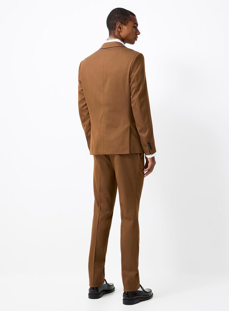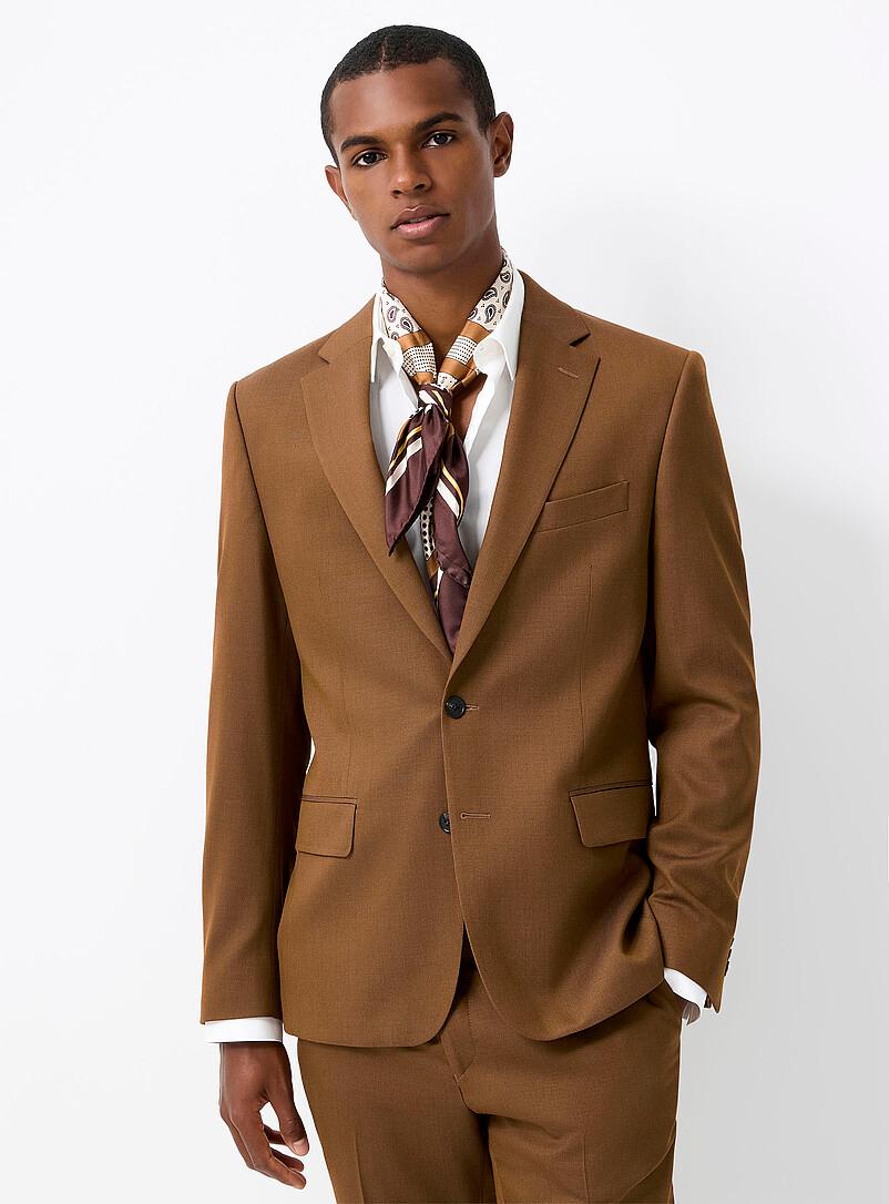 Our Stockholm suit has a slim fit and a 7" drop* Jacket with piped flap pockets and side slit vents Finished hem, 36-inch inseam Luxurious slight-stretch wool-blend Italian fabric by Marlane Satiny lining