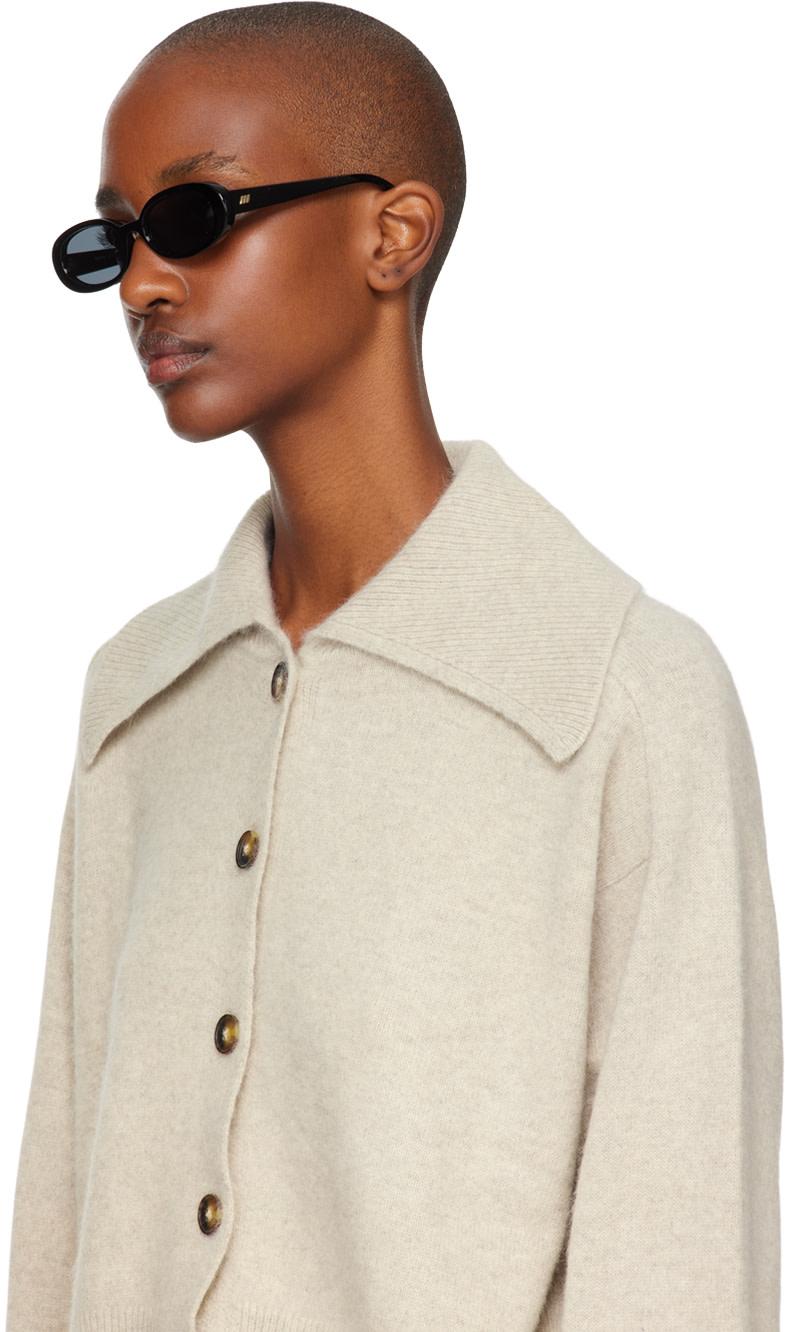 Oval Ecozen® polymer-frame sunglasses in black. · Gray lenses · 100% UV protection, Category 3 · Integrated nose pads · Logo hardware at temples · Includes leather pouch · Size: 51.17 140 Supplier color: Black