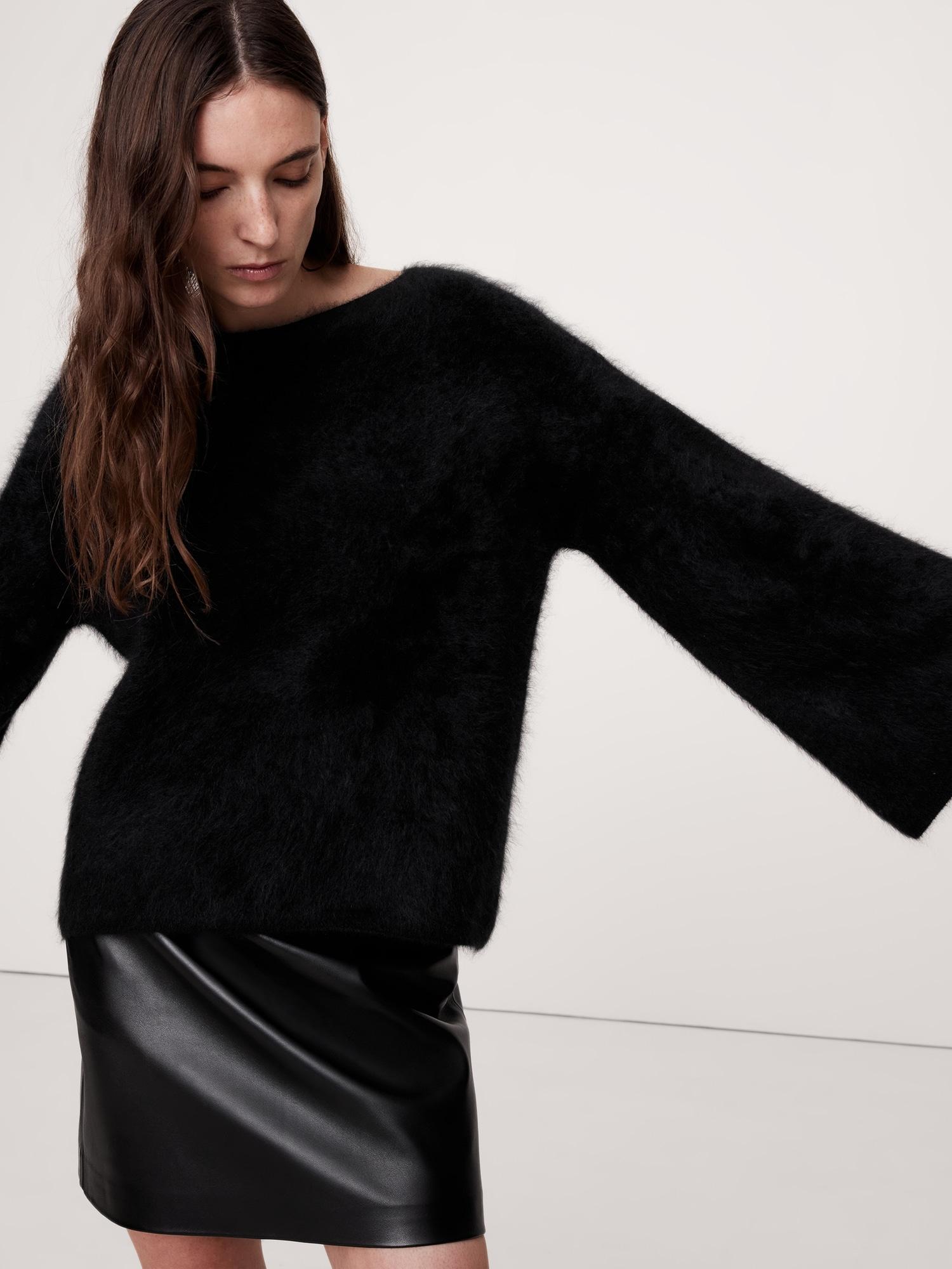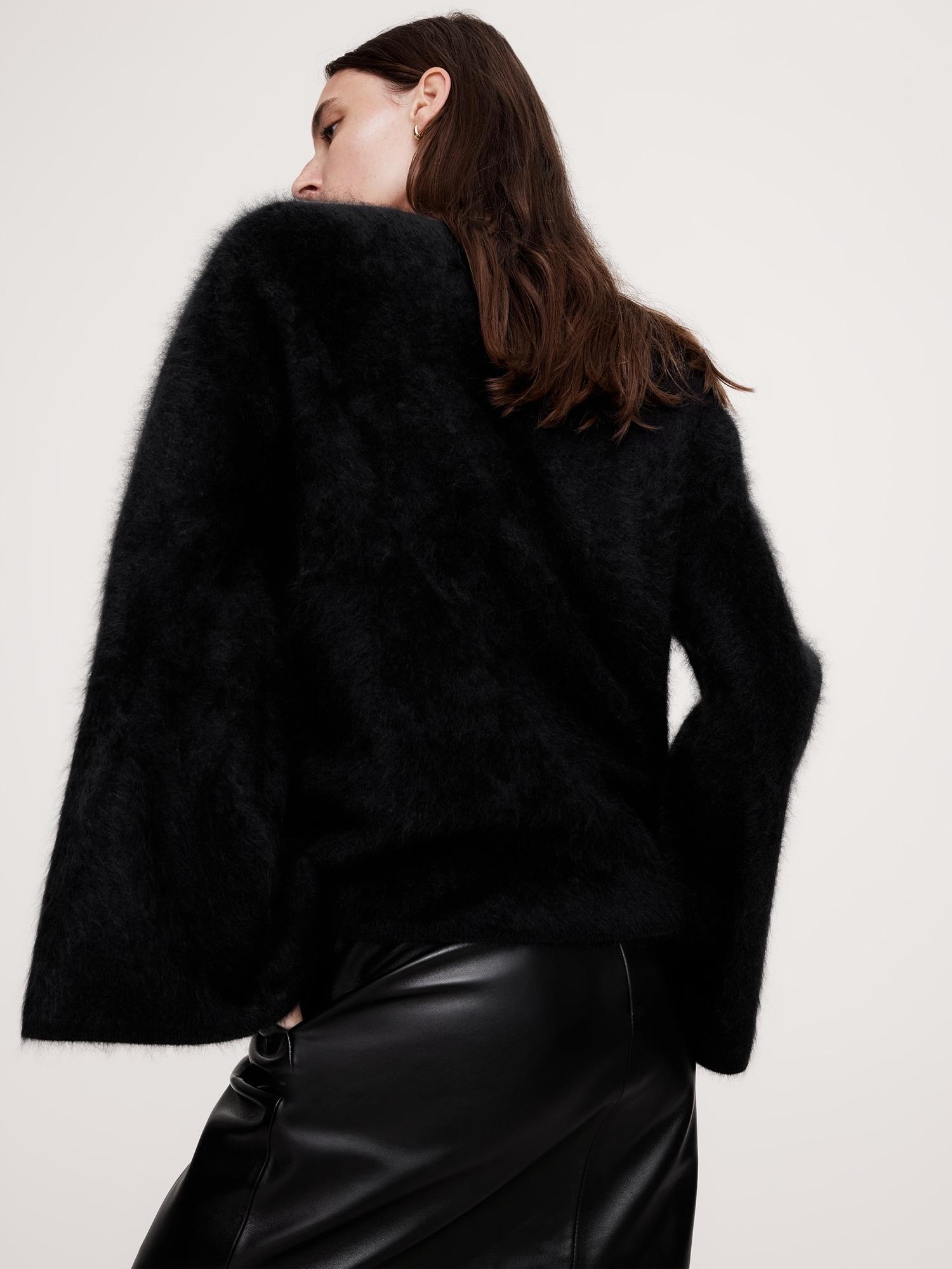 Our softest cashmere yet, this special sweater is knitted from our warmest cashmere yarn before being specially finished for a fluffy, brushed finish that adds luxurious texture. Here, we put it to use in an oversized silhouette with flared sleeves for dramatic effect.