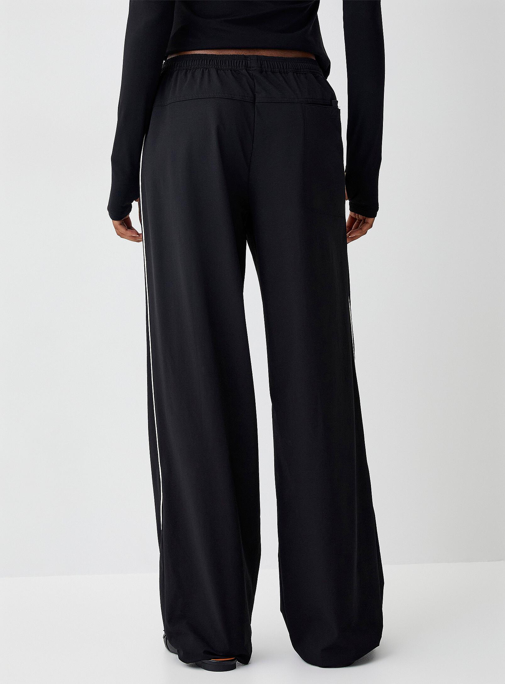 Stretch fabric made of recycled nylon Elastic waist with an adjustable inner drawstring Ankles with adjustable barrel toggle Slit pockets at the front Patch pocket with hook-and-loop closure at the back