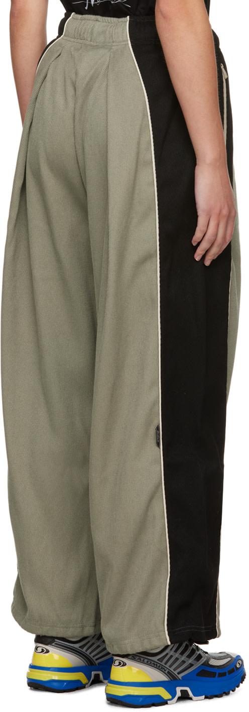 Wide-leg polyester-blend twill and stretch polyester-blend twill track pants. Faux-leather piping throughout. · Paneled construction · Concealed drawstring at elasticized waistband · Two-pocket styling · Pleats at front and back · Embroidered logo patch at front · Concealed bungee-style drawstring at cuffs · Logo flag at back leg Supplier color: Khaki Body: 64% polyester, 36% rayon. Trim: 63% polyester, 35% rayon, 2% elastane. Made in South Korea.