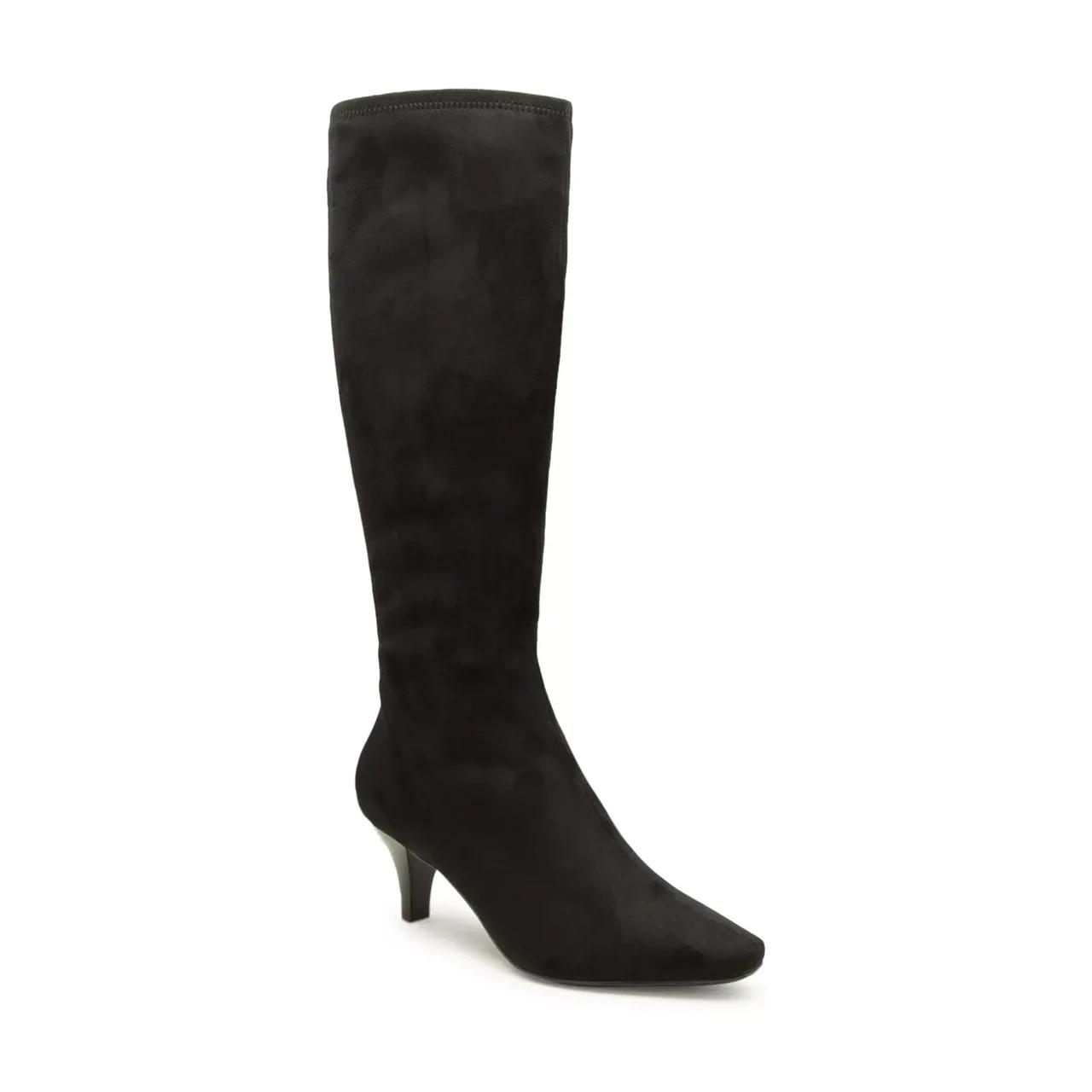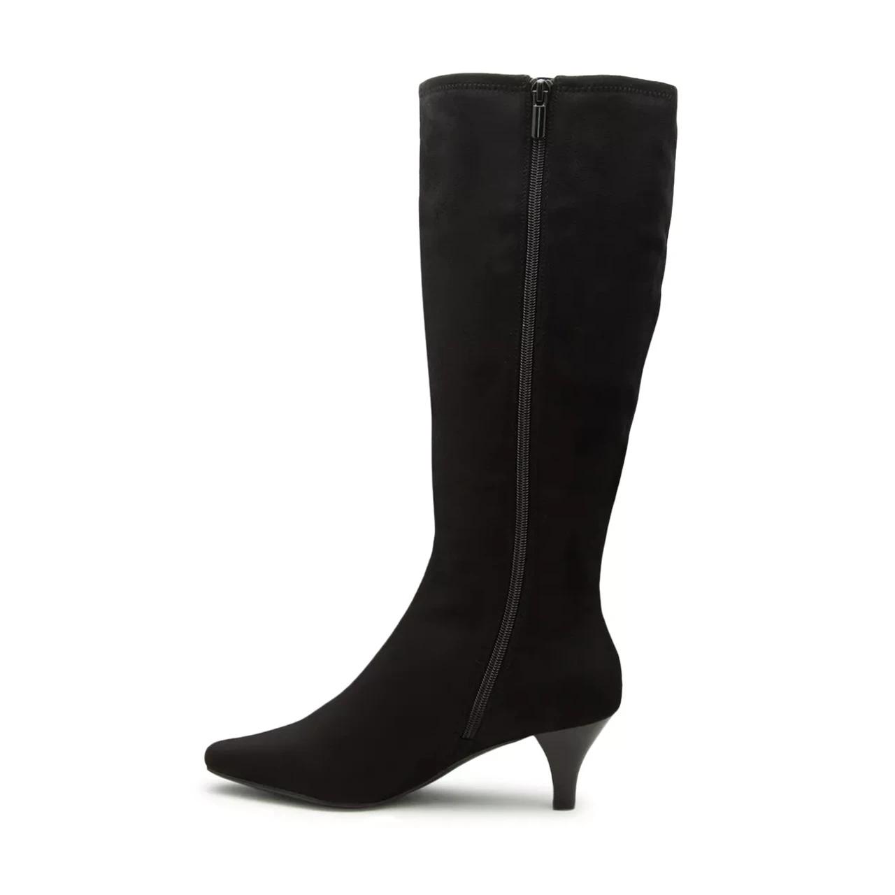 Get a sleek, ravishing look this winter donning these women's Impo Nadie black dress boots. Designed in a tall and stretchy profile, these boots comprise an easy-to-wear inside zip closure, a snip toe front, gently padded footbed and durable outsole with elegant kitten heel.