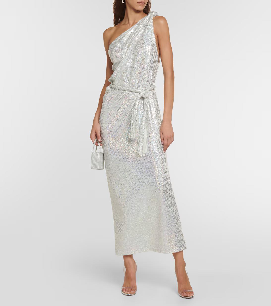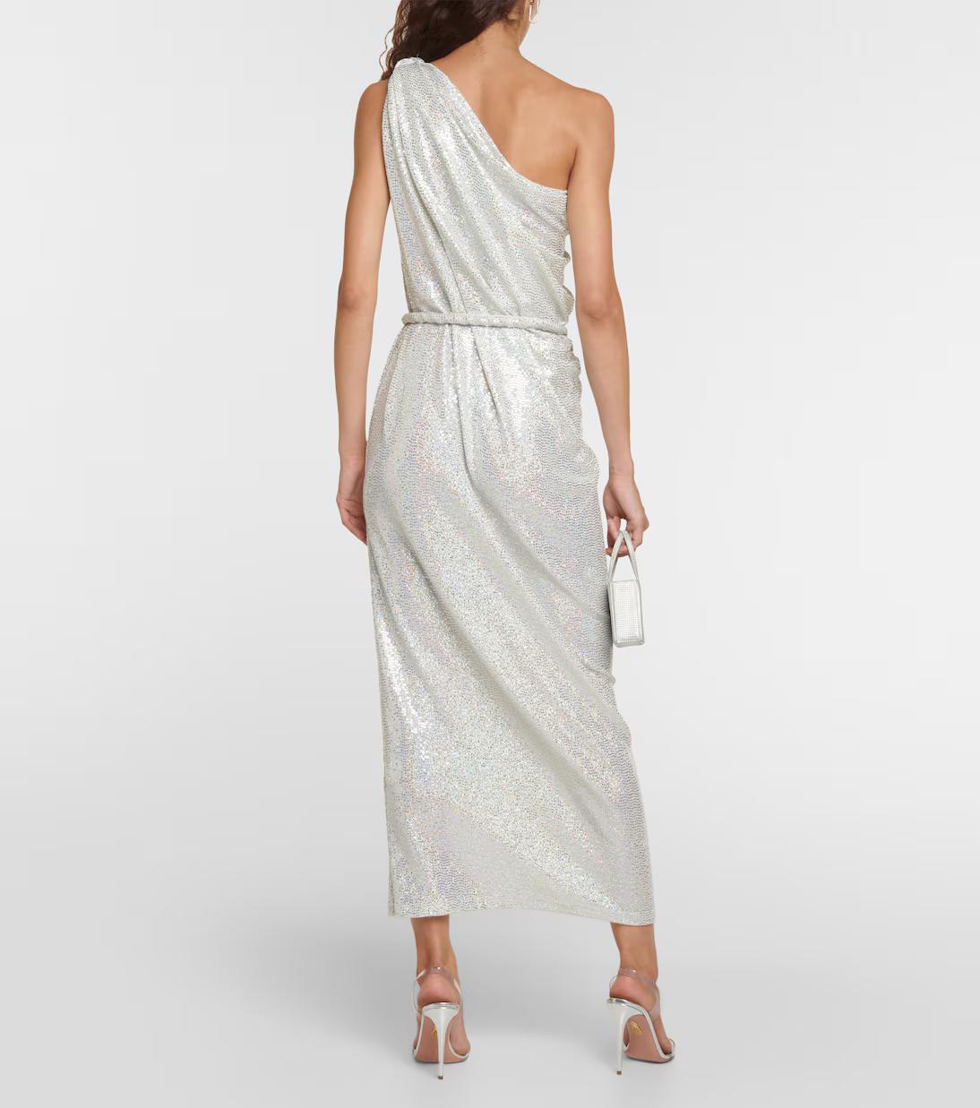 Dodo Bar Or's elevated eveningwear approach is spotlighted by this sequined midi dress. Boasting a sculptural silhouette, this one-shoulder style is draped and detailed with a self-tie waist belt. Made in Hungary Material: 86% nylon, 9% metallic fibres, 5% elastane Care instructions: machine wash at 30 degrees Designer color name: White Item number: P00794384