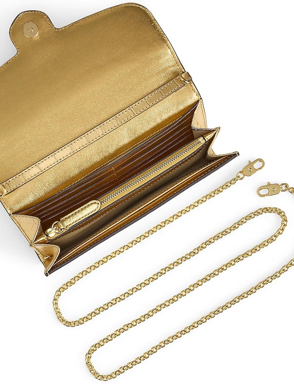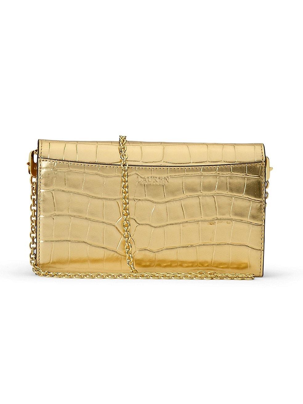 Crafted with glossy, crocodile-embossed leather and finished with a modern chain strap, the Adair combines the convenience of a crossbody bag with the essential storage of a wallet, thanks to its compact silhouette and array of pockets. An oval-shaped “LRL” logo at the front provides a signature finish. Magnetic snapped closure Oval-shaped “LRL” brass-finished logo at the front Exterior slip pocket Eight credit card slots, one zip pocket, and two slip pockets at the interior Lining is made with polyester and recycled polyester Includes a dust bag Main: 100% leather Trim: 100% leather Lining: 100% polyester Clean by a leather specialist Imported