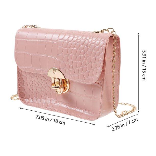 Description Made of premium PU leather, this bag can compliment well on various style dress and shoes in matching color. You can wear it as a crossbody bag, shoulder bag, messenger bag, purse and hand bag, which can hold keys, money, cards, wallet, headphones, passport, tickets, personal small items. Features - Color: Pink. - Material: PU leather. - Size: About 18 x 15 x 7cm. - Every detail of crossbody bag is carefully designed and check. - With metal chain shoulder strap. Small PU leather snap fastener bag can be used as wrist bag or cosmetic bag. - Can be used to storage your business cards, phone, wallet, and some small article. - The exquisite structure and craft make it looks unique and distinctive.It can not only be apply for practical use, also used be a great gift for others. - Suitable for many occasions such as vacations, shopping, travel and everyday wear. - Warm Tip: Dear buyer, Due to lighting effect, monitor's brightness, manual measurement and etc, there could be some slight differences in the color and size between the photo and the actual item. Sincerely hope that you can understand! Thank you!