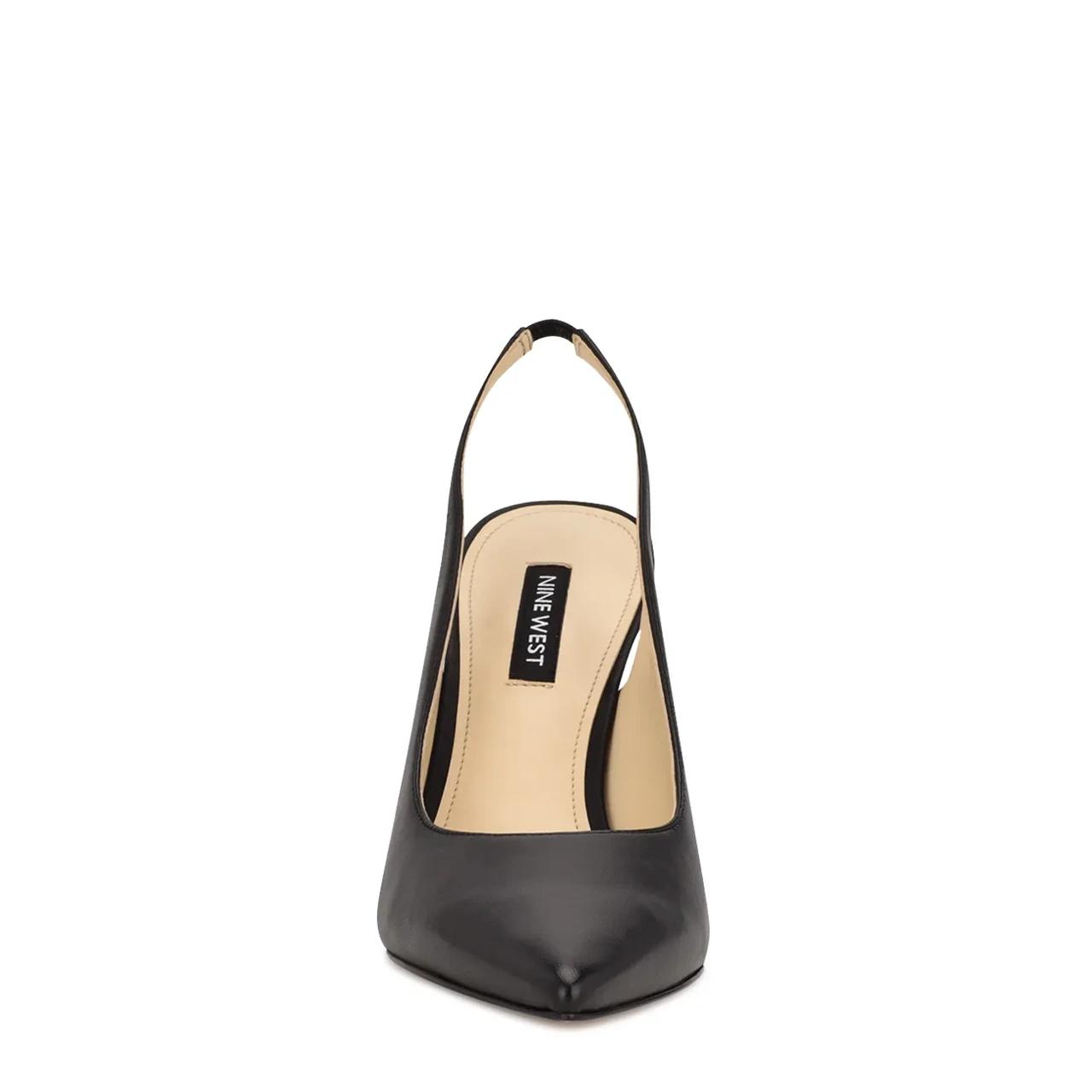 Look charming from heel to toe with these women's Nine West Feather black high heel dress pumps. Comprising synthetic upper, these dress pumps have slingback strap with elastic gore for a comfortable fit, sleek pointy toe, cozy padded insole, supportive patterned outsole and wrapped tapered heel.
