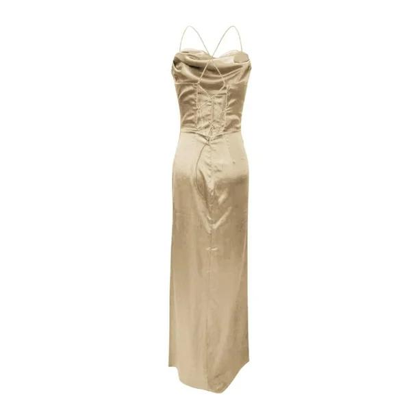 Wyzesi Plus Size Formal Dresses for Women Sequin Ladies Simulated Silk Sleeveless Back Strap Side Slit Long Suspender Dress