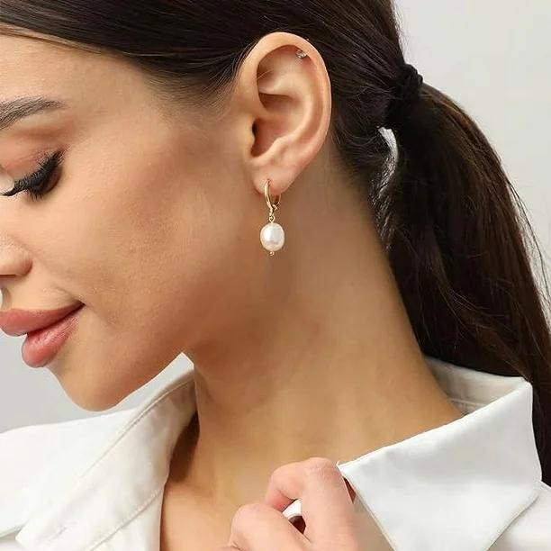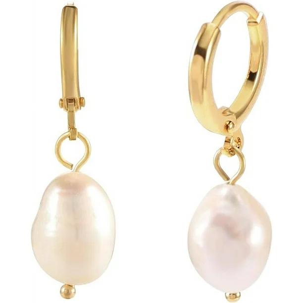 Huggie hoop pearl earrings: 1pair, total size:1.4cm*3cm.This hypoallergenic earrings won’t turn your skin or itself green or red. Material :Irregular pearl,unique, elegant and beautiful looking. These stunning earrings are plated in 18k gold to ensure a long lasting finish that is nickel free lead free and hypoallergenic Story of mother of pearl: Irregular pearl is a trendy of jewelry. Every pearls is unique in this world. Each pair of our freshwater pearl earrings is beautiful and glossy. Every one is different, even one pair.We try our best to find 2pcs of almost same as a pair. BEST GIFTS FOR HER :This pair of pearl huggie earrings makes the perfect gift for Mother's Day Valentine's Day Christmas Birthdays Engagement Brides Bridesmaids or Graduation for any woman teen children adults daughters granddaughters girlfriend wife fiancee or that special lady.