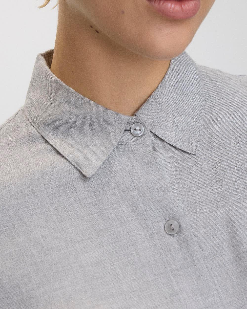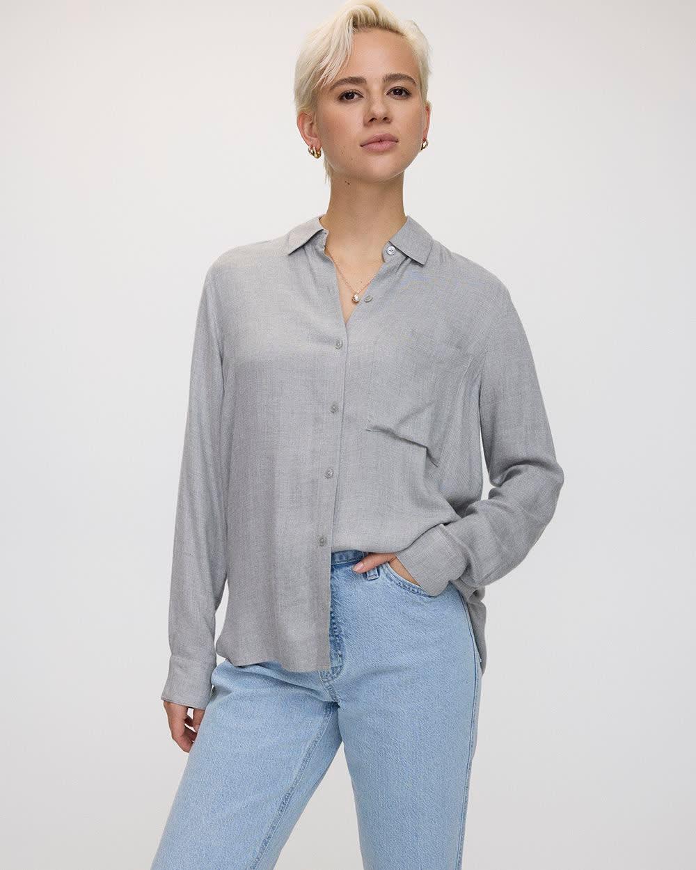 Simple, yet elegant, this lovely buttoned-down blouse pairs perfectly with any bottom. - Woven fabric - Loose fit - Shirt collar - Long sleeves with drop shoulders - Buttoned-down front - Patch pocket at chest - Rounded hem - Longer length