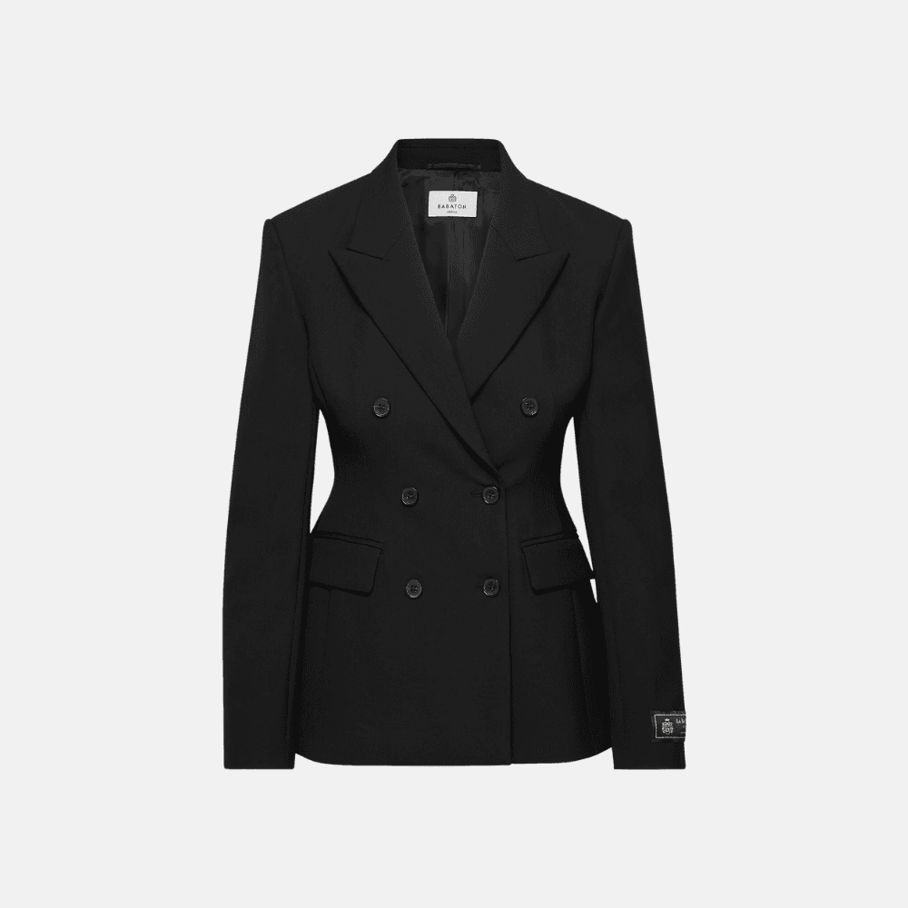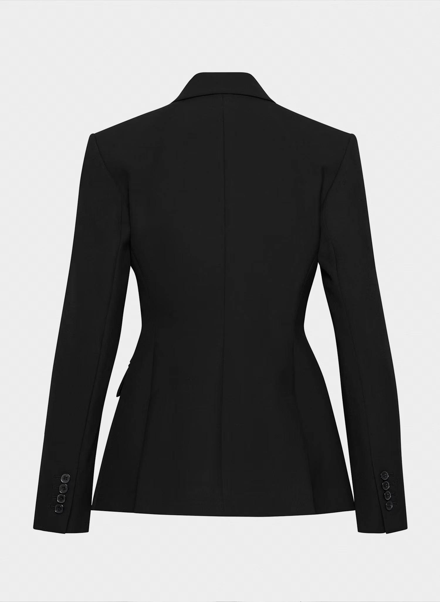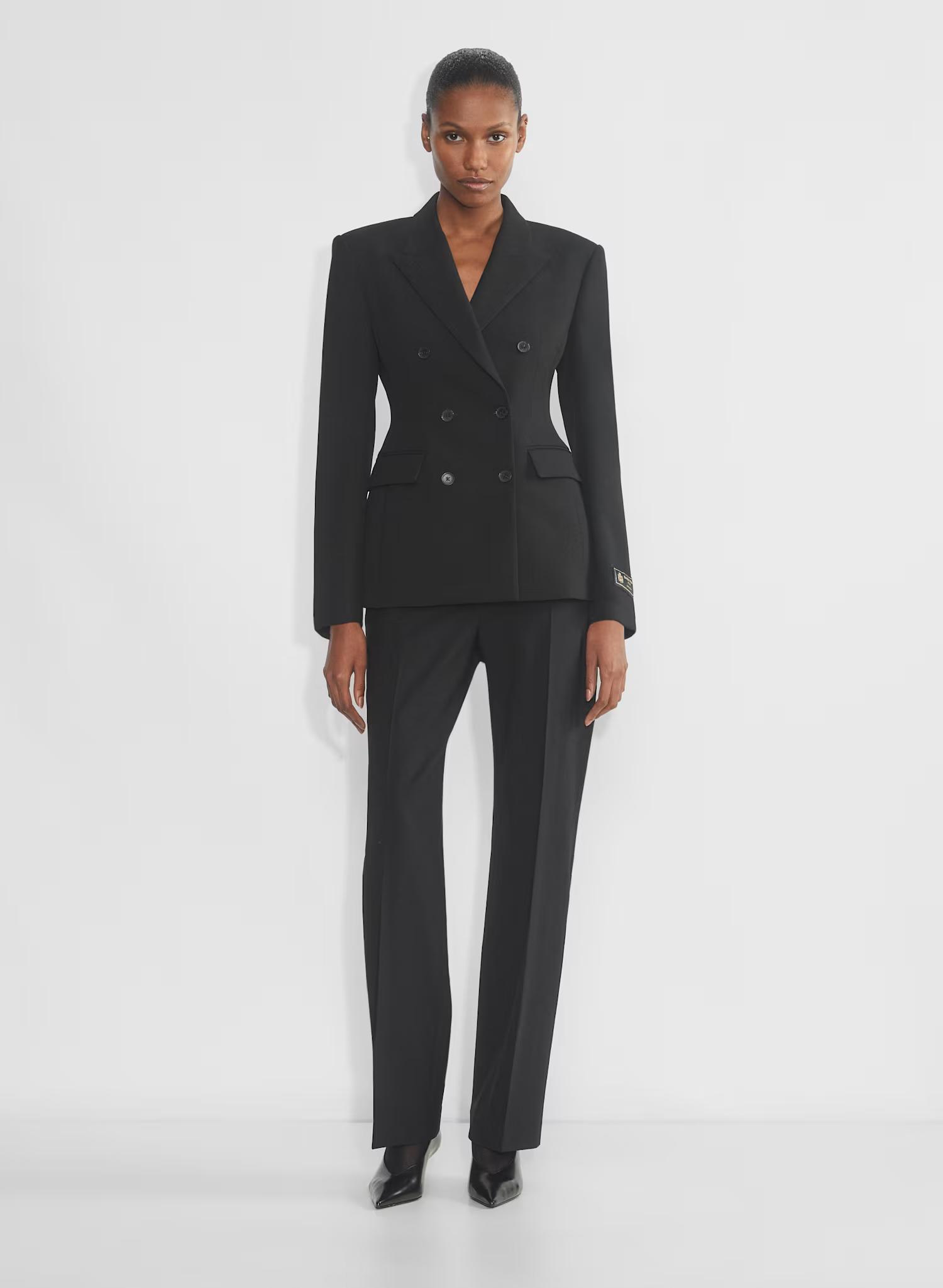 Boss mode This is a double-breasted blazer with a peaked lapel, an hourglass silhouette and princess seams for shaping. It’s expertly tailored with (Re)ssential — softly structured stretch fabric that holds its form while you move easy. This fabric is sourced from a premier Portuguese mill and made with recycled polyester and LENZING™ ECOVERO™ Viscose.
