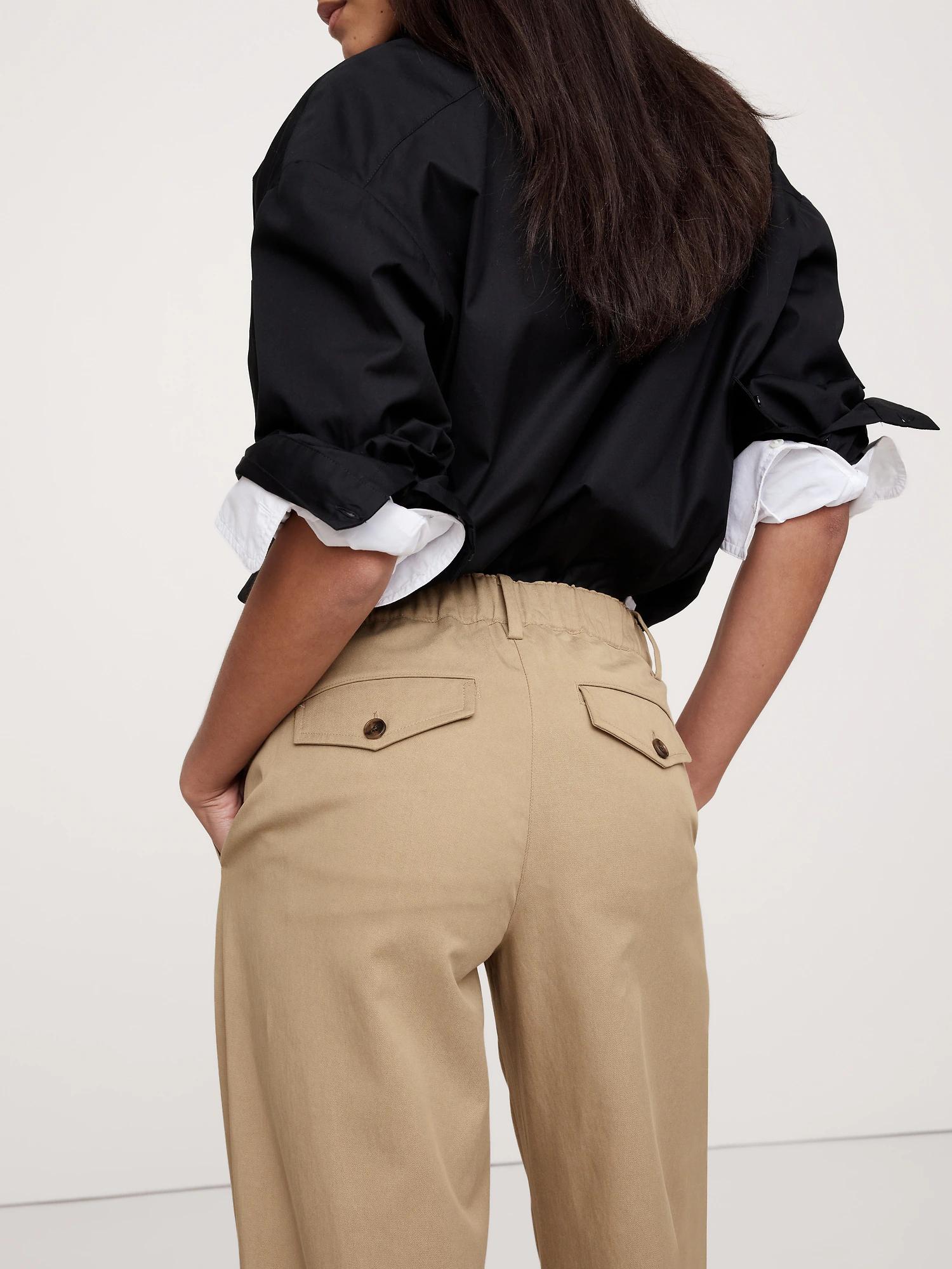 An easy, everyday pant. We cut this pant with a wide-leg and full length inseam. Here, our designers sourced a TENCEL™-cotton twill fabric that’s buttery soft for everyday, but still looks dressed-up. Style with a poplin shirt and slingback heels for weekdays and swap out for oversized cashmere sweaters and lug-sole loafers for weekends. Plus, our designers added hidden elastic at the back waist for a custom fit.
