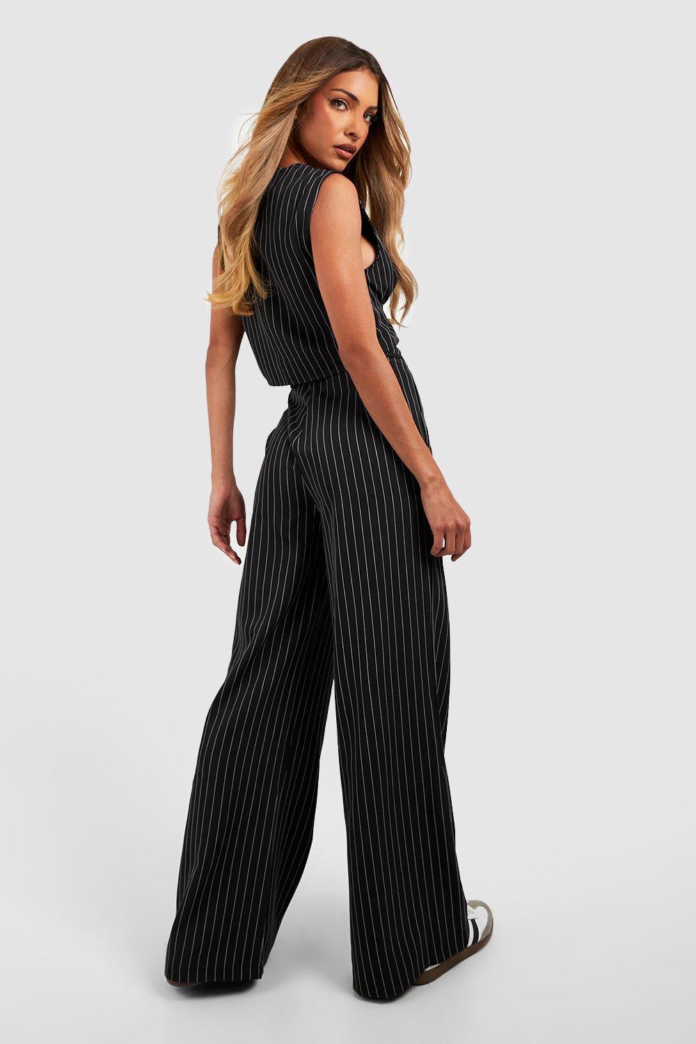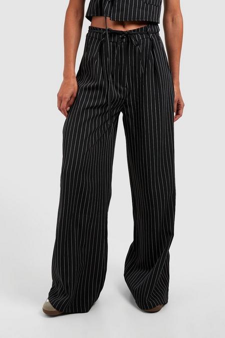 Pinstripe Tie Waist Tailored Wide Leg Pants