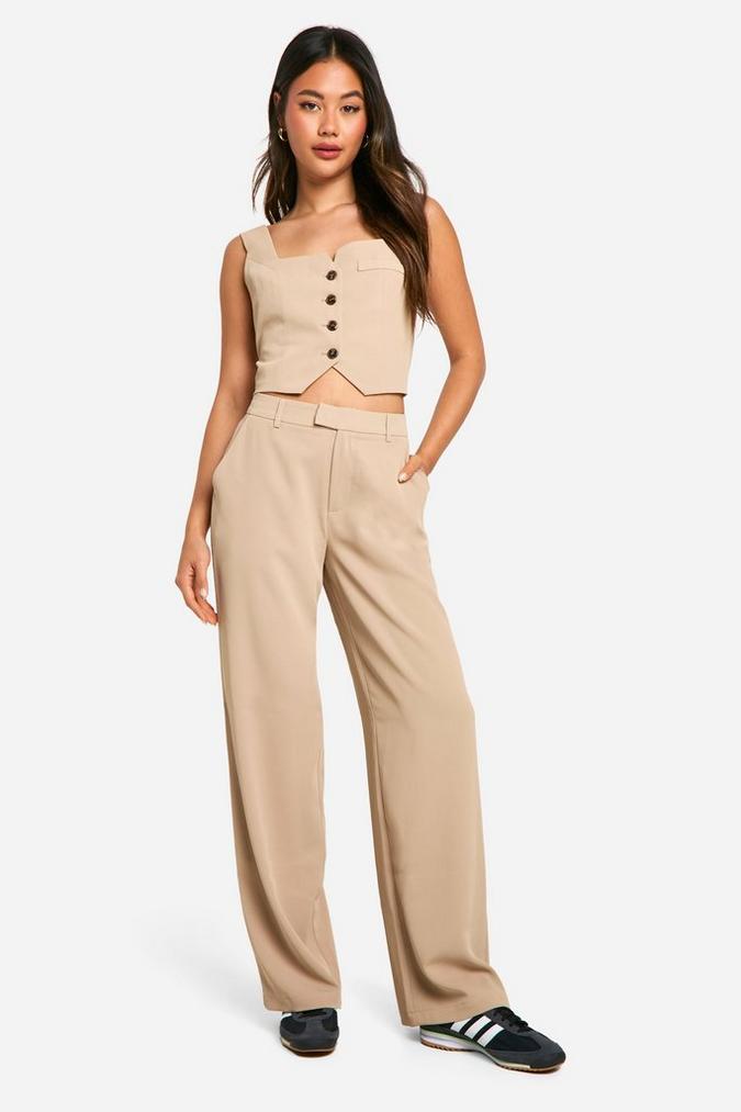 Oversized Double Breasted Tailored Blazer, Cropped Waistcoat & Wide Leg Trouser Suit Set