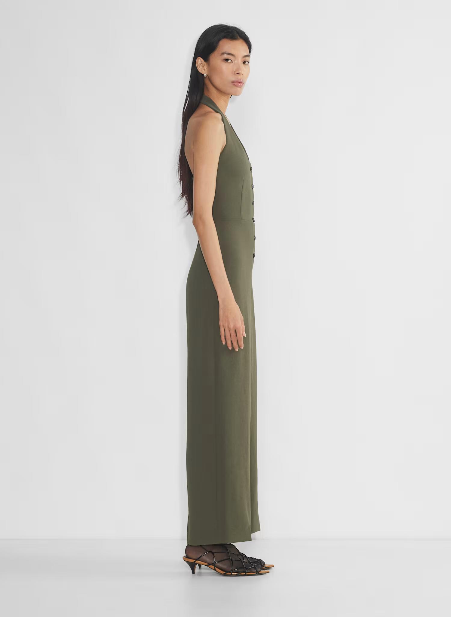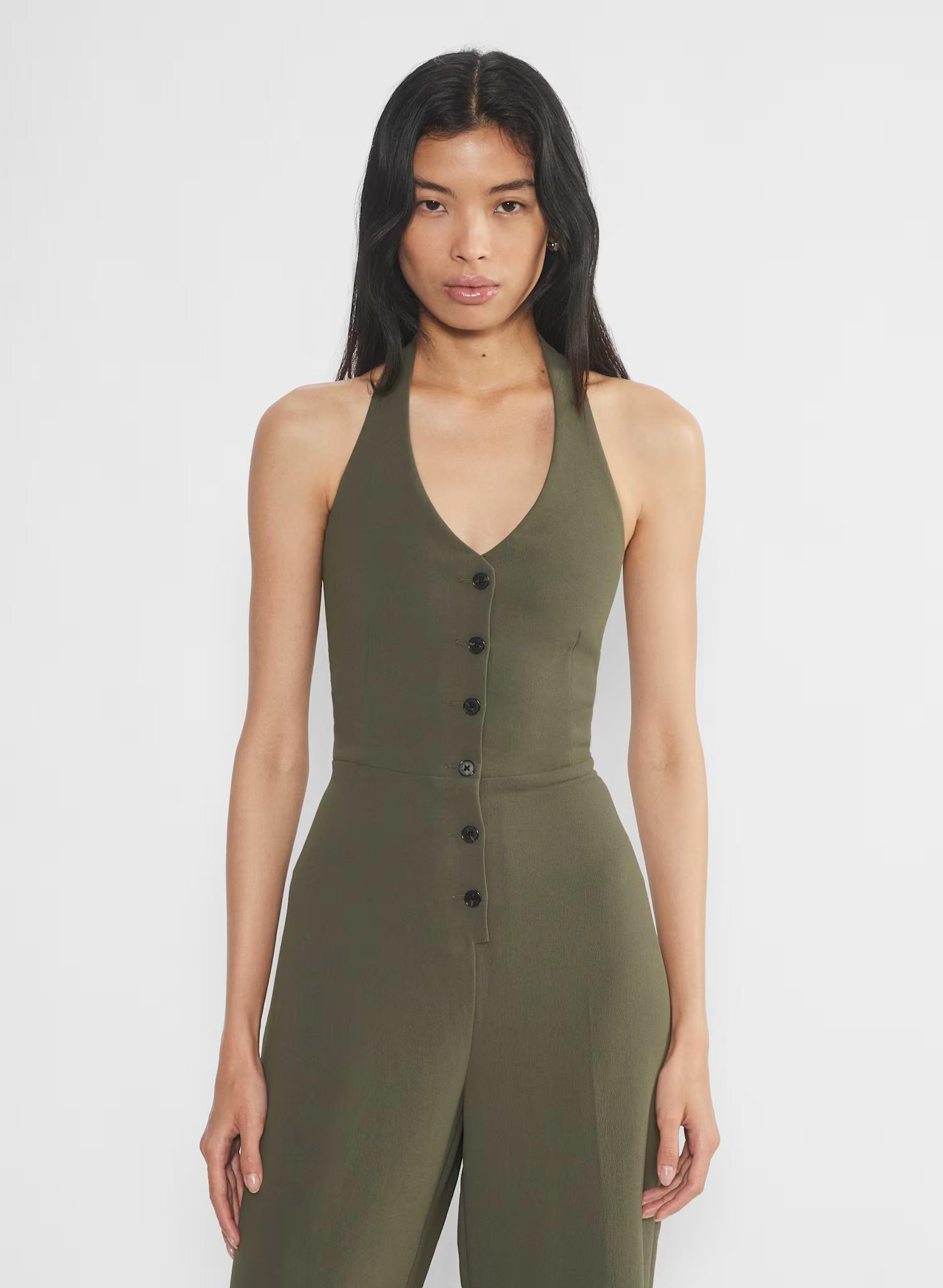 For all those gallery openings you must attend This is a sleeveless button-up jumpsuit with a wide leg, V neckline and smocked back. It’s made with Crepette™ — our one-of-a-kind Japanese crepe fabric beloved for its subtle texture, breezy drape and the fact that it basically never wrinkles.