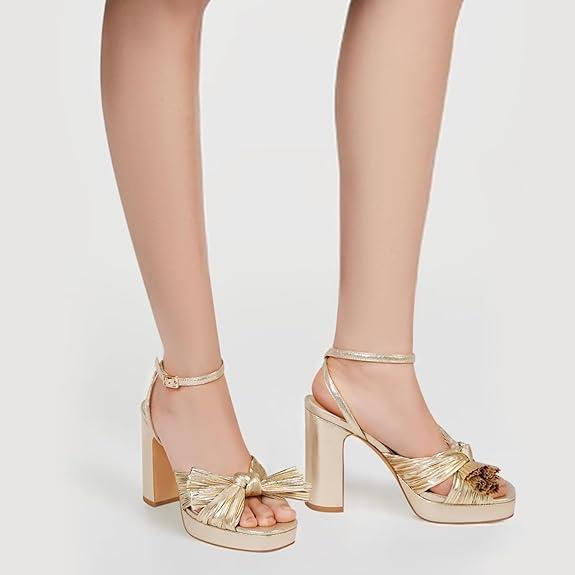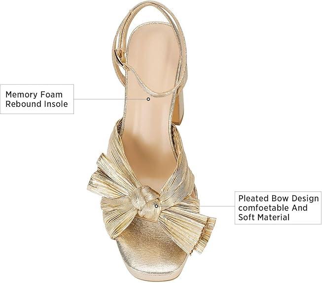 MICIFA Women's Bow Heeled Sandals Pleated Bowknot Platform High Heel Sandals Ankle Strap Chunky Dress Bridal Wedding Shoes