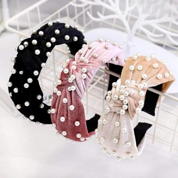 Headbands for Women Head Bands - 3Pack Wide Knotted Pearl Colorful Fashion Cute Large Accessories Hairbands for Girls