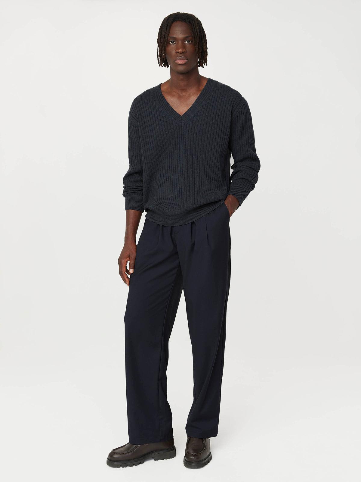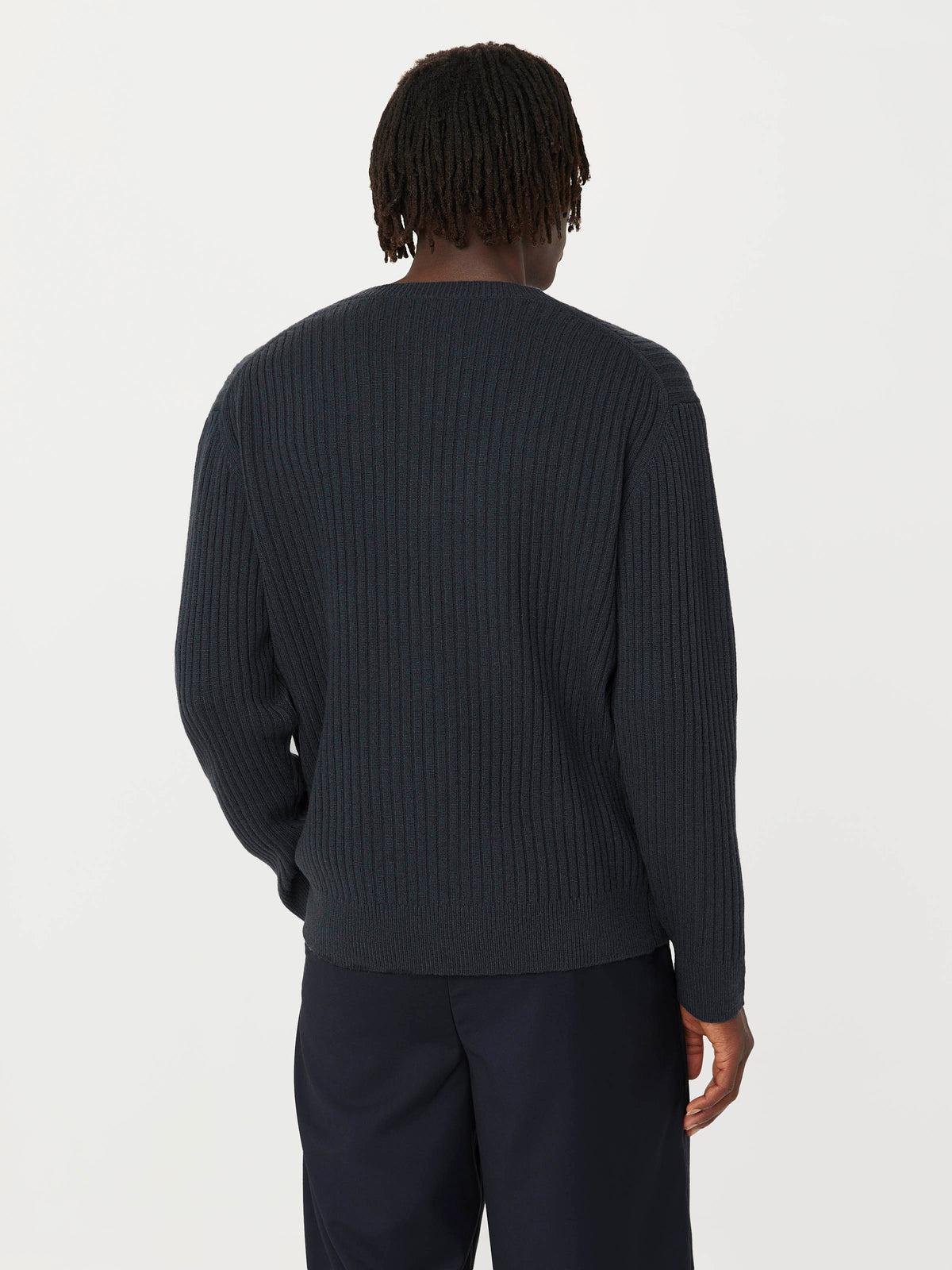 The Ribbed Lambswool V-Neck Sweater in Slate Grey