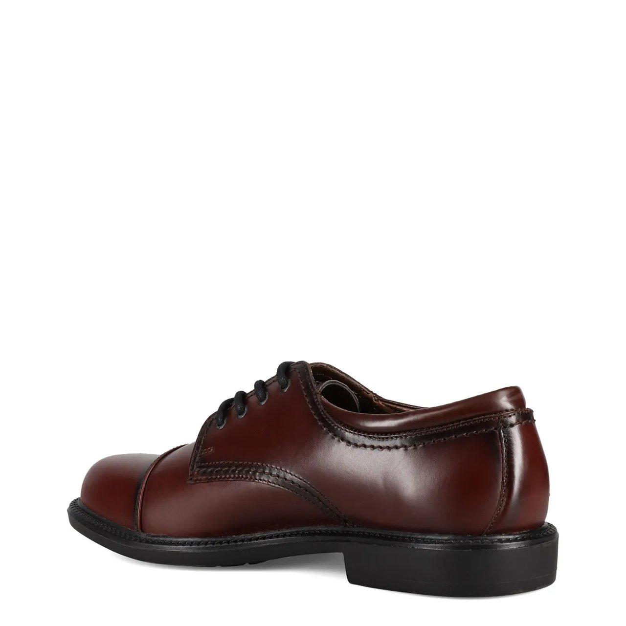 Dress to impress in comfort with men's Gordon cap toe Oxford from Dockers. Made with leather upper, lace-up closure and round toe, these dress shoes have Flex construction for exceptional comfort. The padded collar, synthetic lining along with memory foam footbed coddles your feet. The rubber outsole ensures durable grip.