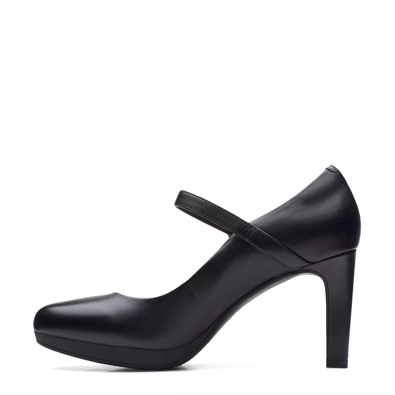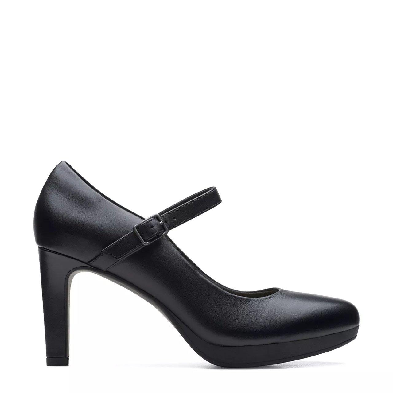 Stun the onlooker with these women's Clarks Ambyr Shine black high heel dress mary jane pumps. Crafted using leather upper, these dress pumps have round toe front, adjustable Mary jane strap with buckle closure for a snug fit, OrthoLite® footbed for daylong cushioning, antimicrobial protection and durable TPR outsole with covered tapered heel.