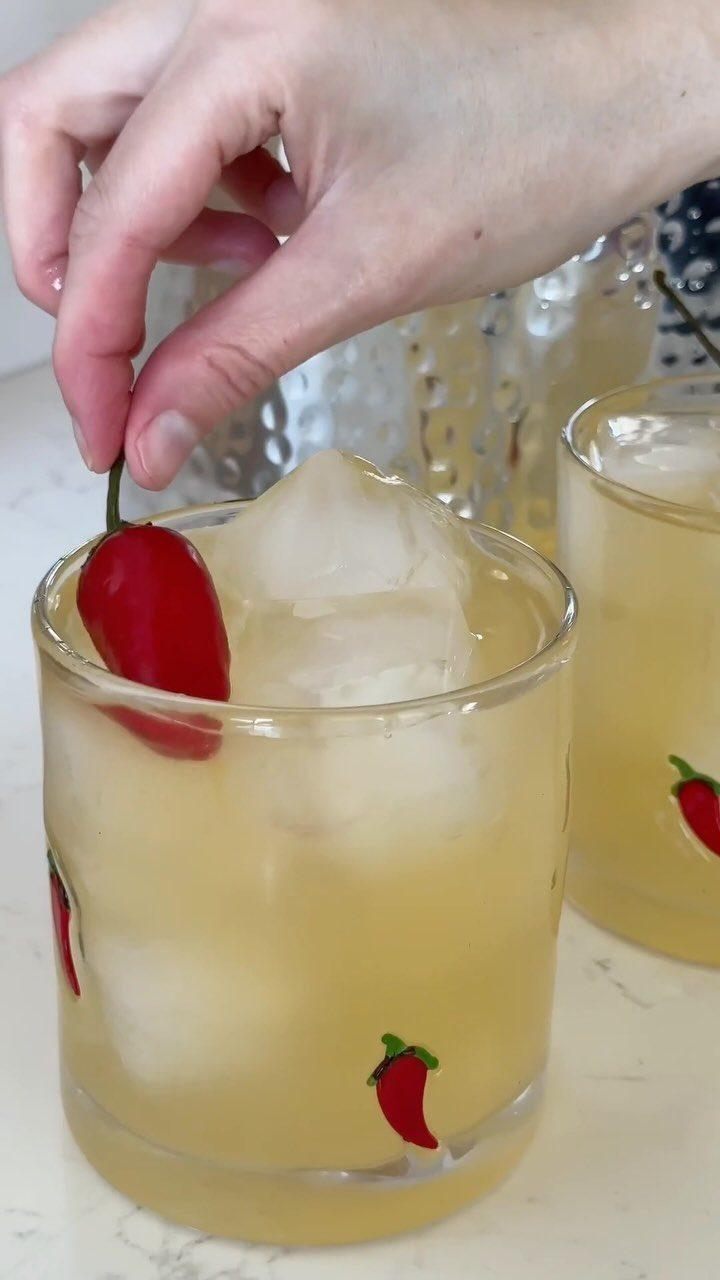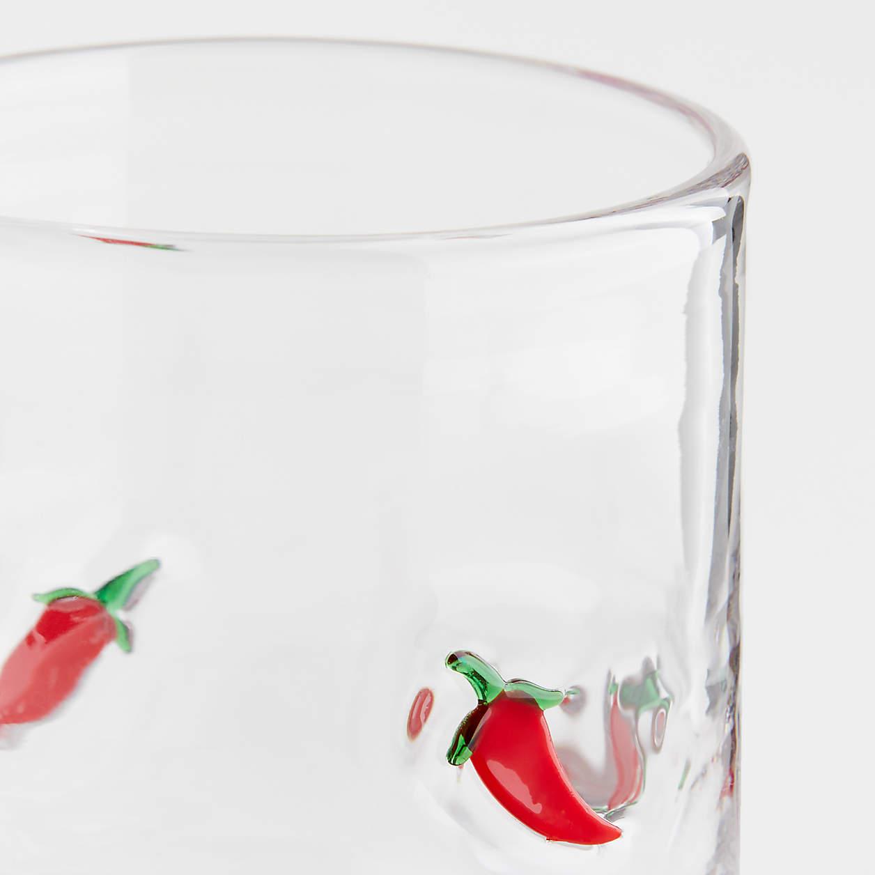 Petite chili peppers blaze their way around our double old-fashioned glass, spicing up Micheladas, Jalapeño Margaritas and Chili Palomas. Hand-blown by skilled craftspeople, the clear glass vessel boasts clean curves and a crop of embedded glass red hot peppers. A vibrant pair of our chili rocks glasses and a bottle of artisanal Bloody Mary mix makes a fabulous gift for a brunch host.