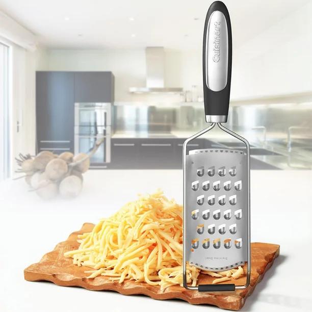 This Large Cut Grater is perfect to grate cheese and other foods! Nonslip grips that offer a firm and comfortable hold, making any grating easy. • Soft-grip nonslip handles with stainless steel • Embossed Cuisinart trademark logo • Nylon tool heads are safe for non-stick cookware and heat resistant to 400⁰F • Dishwasher safe