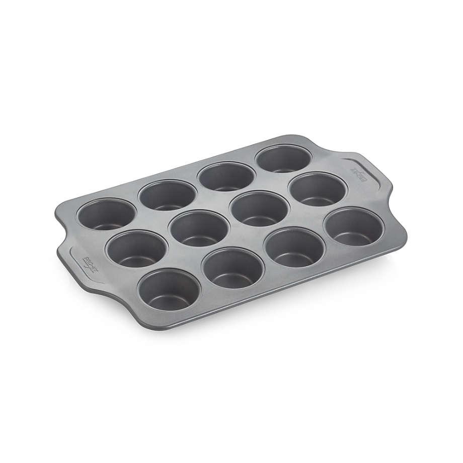 Bake a dozen muffins, cupcakes or butter fan rolls in this durable steel muffin pan from the cookware experts at All-Clad. Coated with a ceramic-reinforced non-stick coating that resists scratches, the pan provides a quick, easy release for muffins as well as mini frittatas, petite pies, spanakopita cups and other creative single-serve treats.