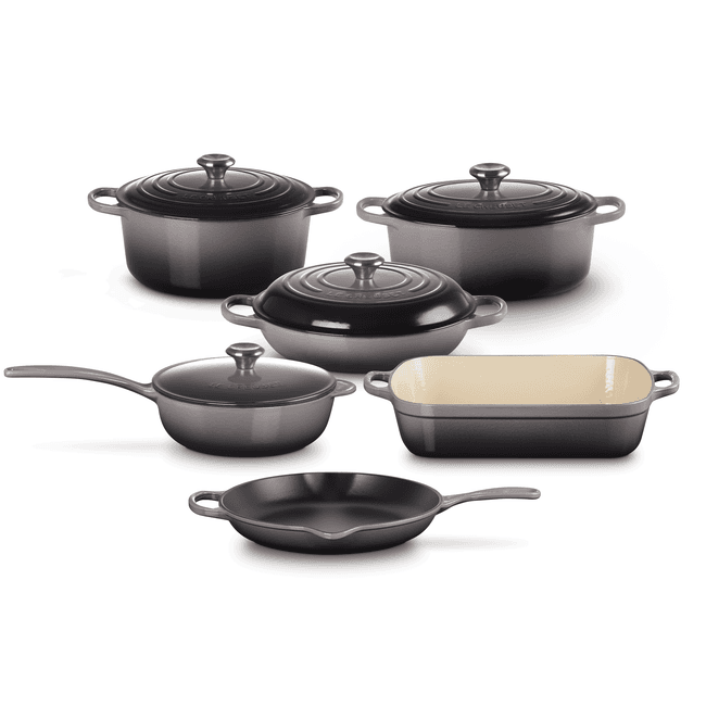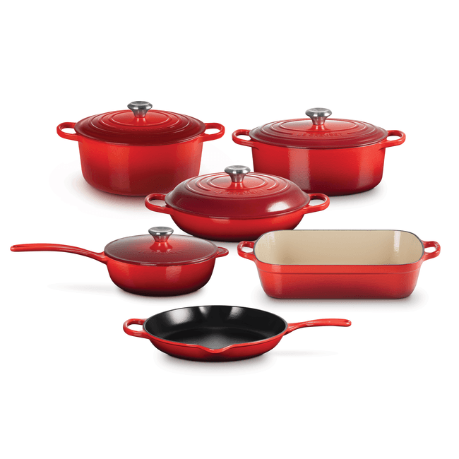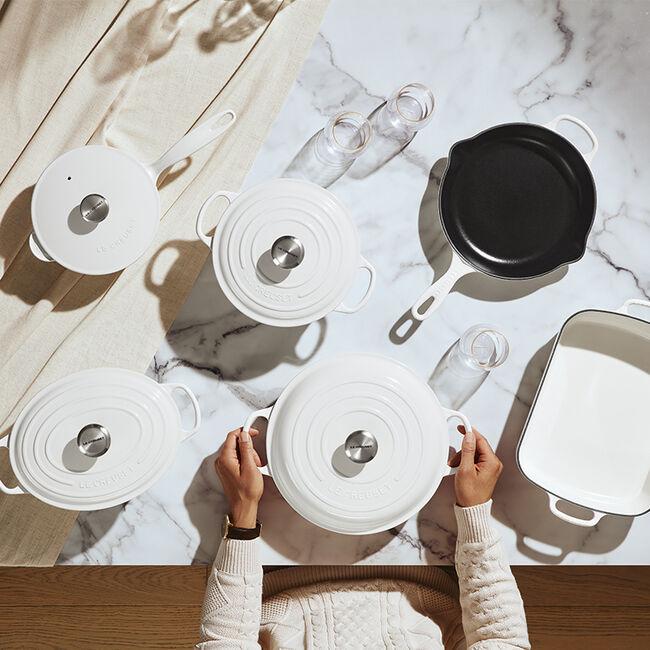 Our 10-Piece Enamelled Cast Iron Cookware Set is the ultimate collection of cast iron cookware, equipping your kitchen with all the cast iron essentials you’ll need for years to come. Featuring a 6.7 L Round Dutch Oven, 4.7 L Oval Dutch Oven, 3.5 L Braiser, 2 L Saucier, 30 cm Iron Handle Skillet and 4.9 L Rectangular Roaster, this timeless collection will help you prepare all your favourite recipes and even tackle new cooking techniques.