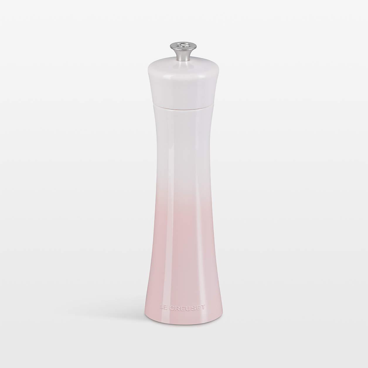 Sleek, minimalist and modern, this salt mill from Le Creuset delivers flawless functionality with eye-catching design. The mill's durable ceramic grinders adjust grind settings with a simple twist—clockwise for a finer grind, counterclockwise for a coarser grind. The salt mill's subtle hourglass silhouette is highlighted with a glossy gradient pink finish.