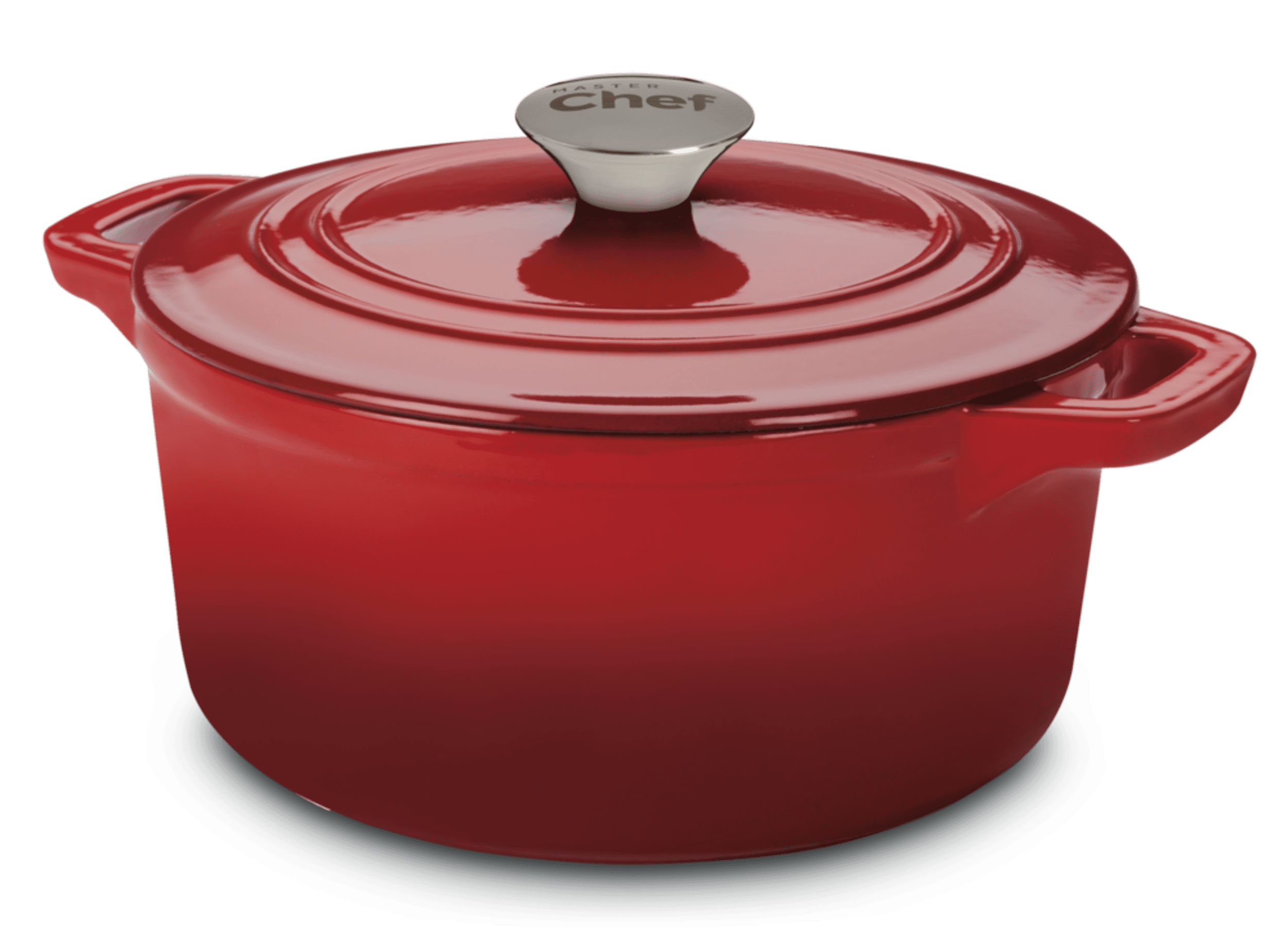 MASTER Chef Round Dutch Oven, Durable Cast Iron, Oven Safe, Red