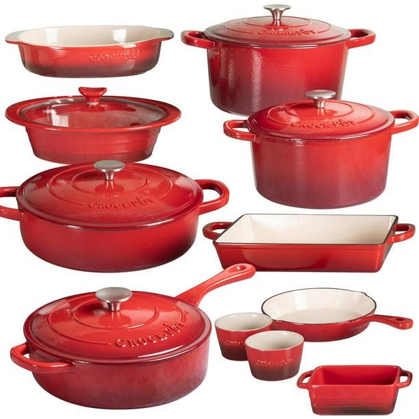 Crock-Pot Artisan 3.5 Qt Enameled Cast Iron Deep Sauté Pan W/Lid, Scarlet Red, Round