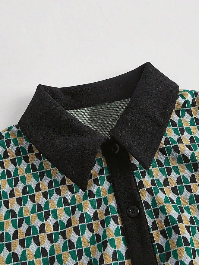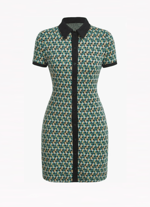 Collar, Short Sleeve, Graphic Print, Contrast Binding, Button Closure, Casual Mini Dress Soft fabric has some stretch Suitable for party, holiday, office, shopping, street, dailywear and so on Disclosure: We are a participant in the Amazon Services LLC Associates Program, an affiliate advertising program designed to provide a means for us to earn fees by linking to Amazon.com and Affiliate sites.
